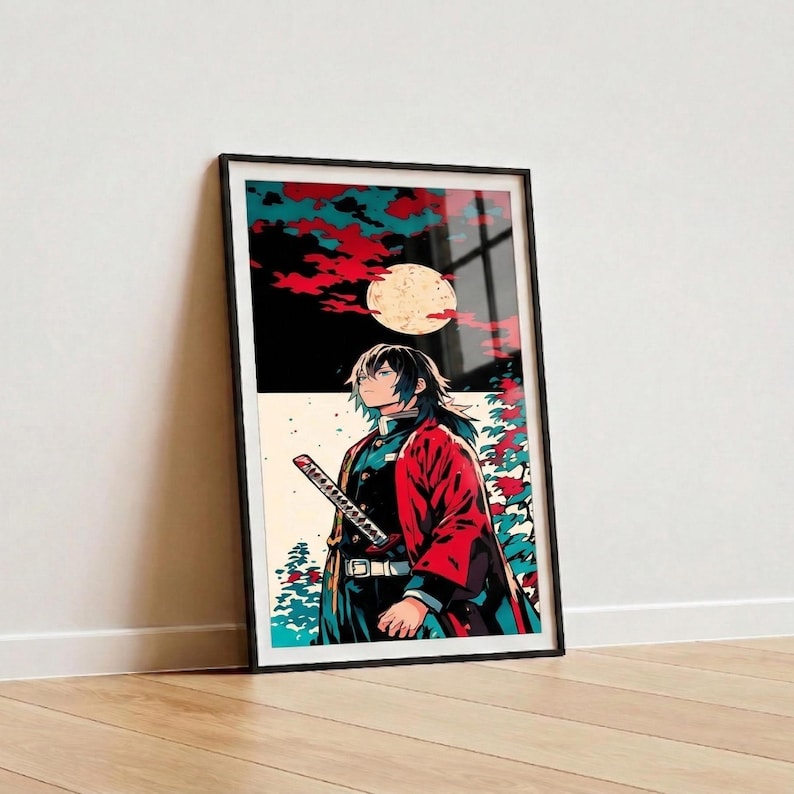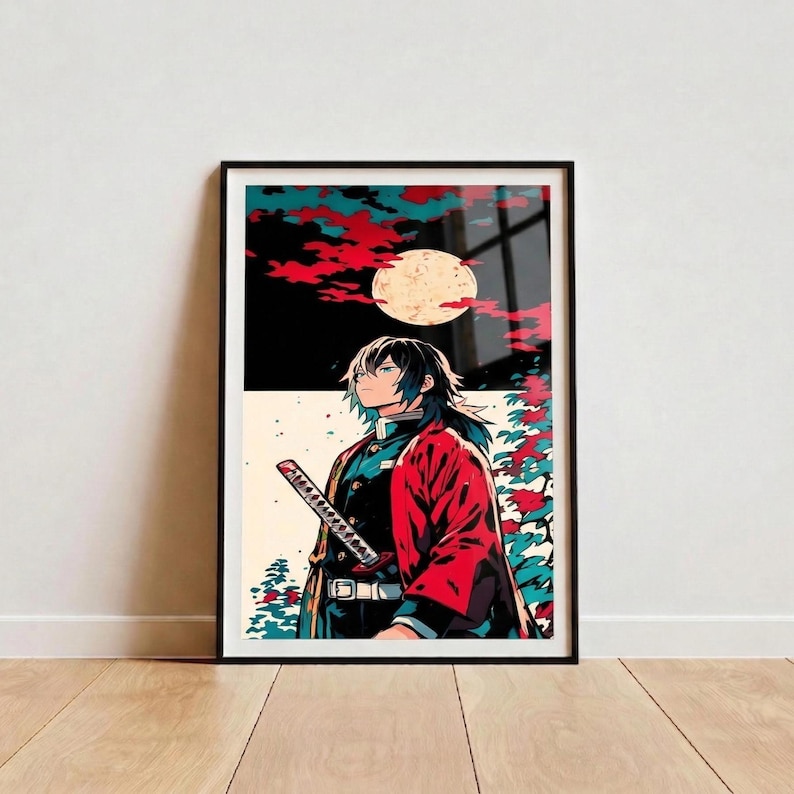 Be the first to review “Demon Slay Moonlit Samurai Matte Poster, Anime Character, Red Cloak, Full Moon”