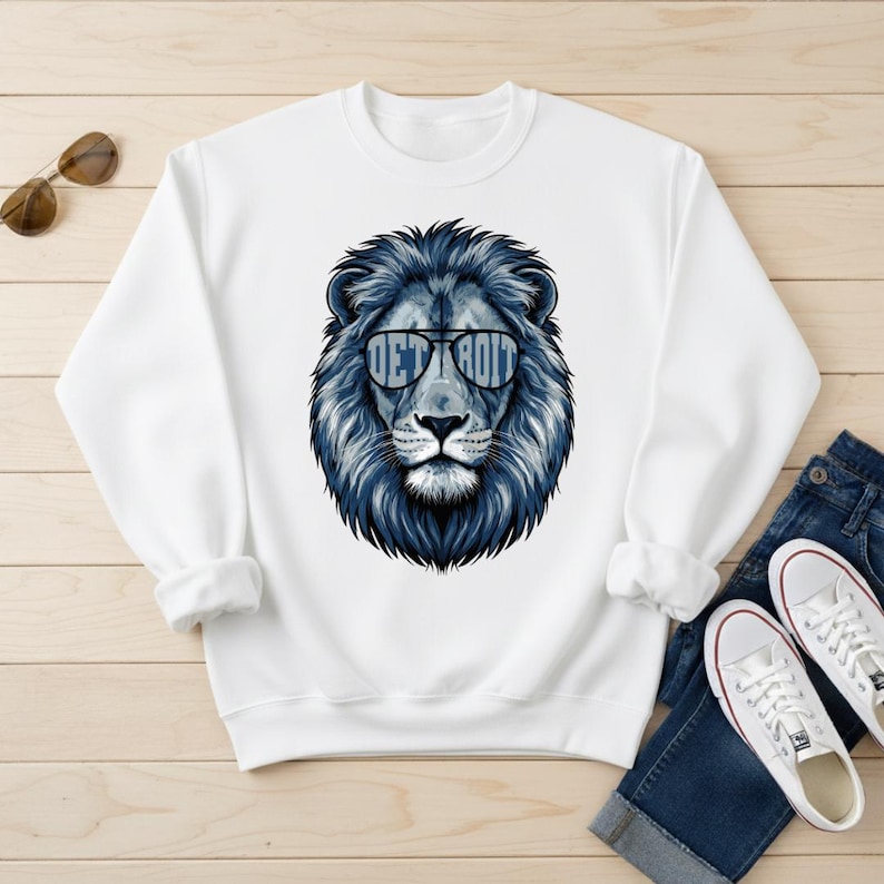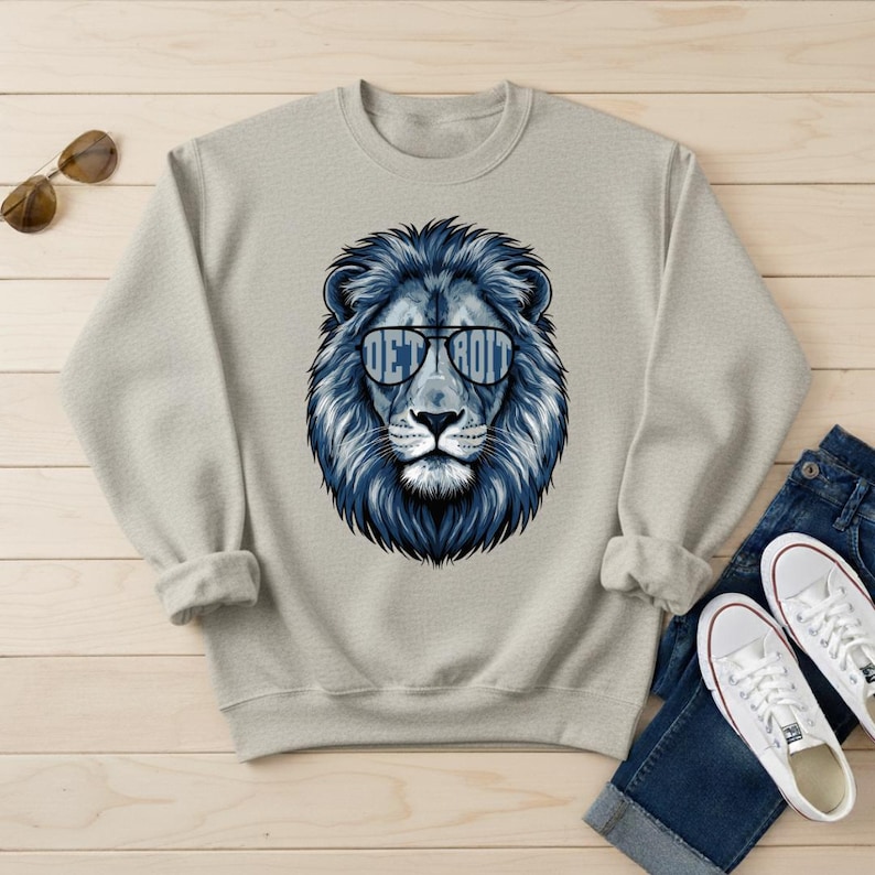 Detroit Football Crewneck Sweatshirt Lion Mascot Unisex Michigan Game Day Football Sweater