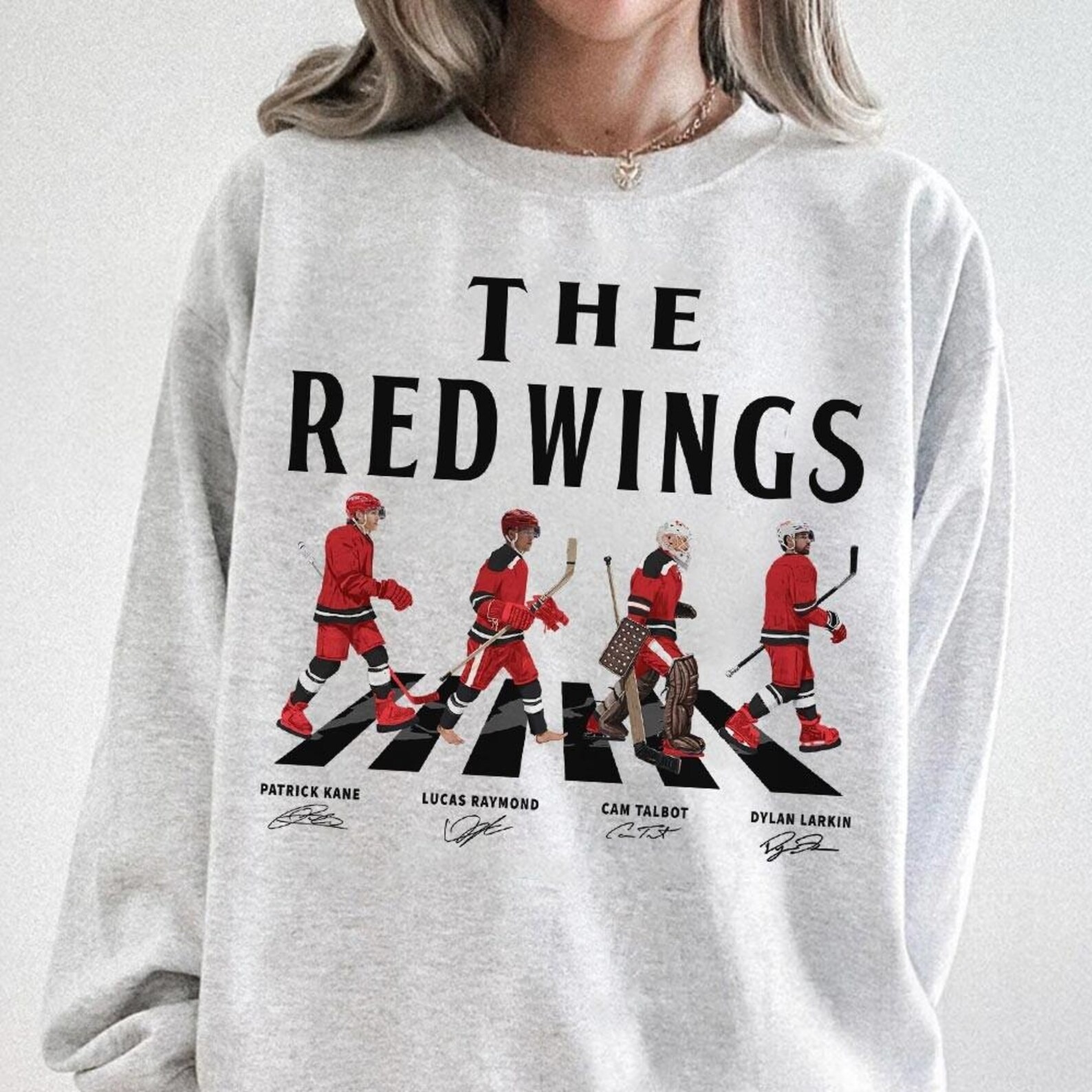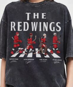 Detroit Walking Road Signatures Ice Hockey T-Shirt, Dylan Larkin Lucas Raymond Gift For Fan Hockey Unisex