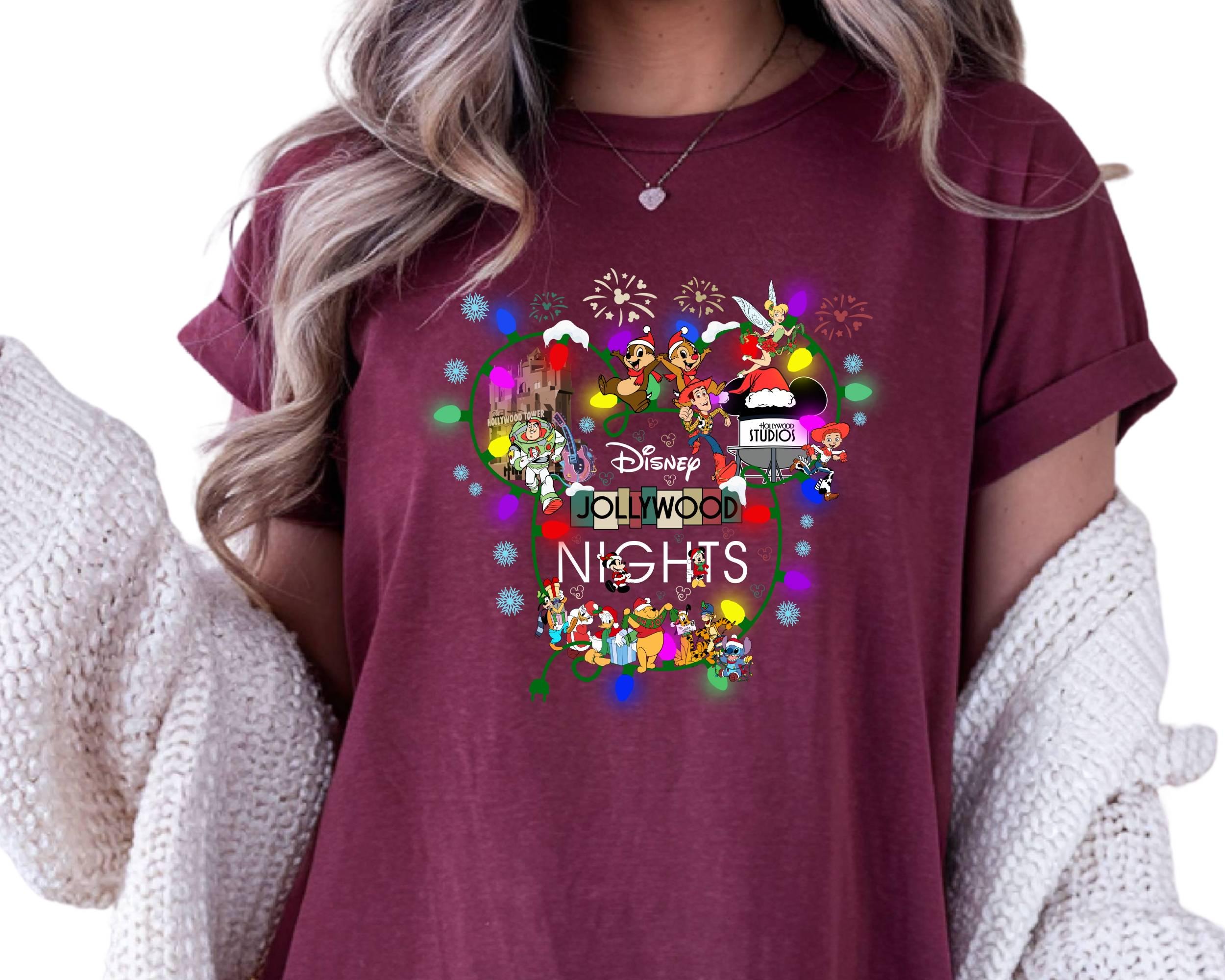Disney Jollywood Nights T-Shirt, Disney Characters Shirt, Hollywood Studios Christmas Hoodie, Christmas Lights Tee