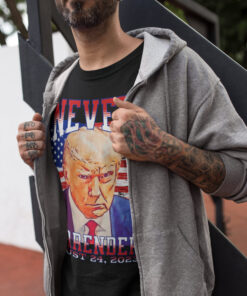 Donald Trump Mugshot Shirt, Never Surrender American Flag Patriot President Trump Shirt
