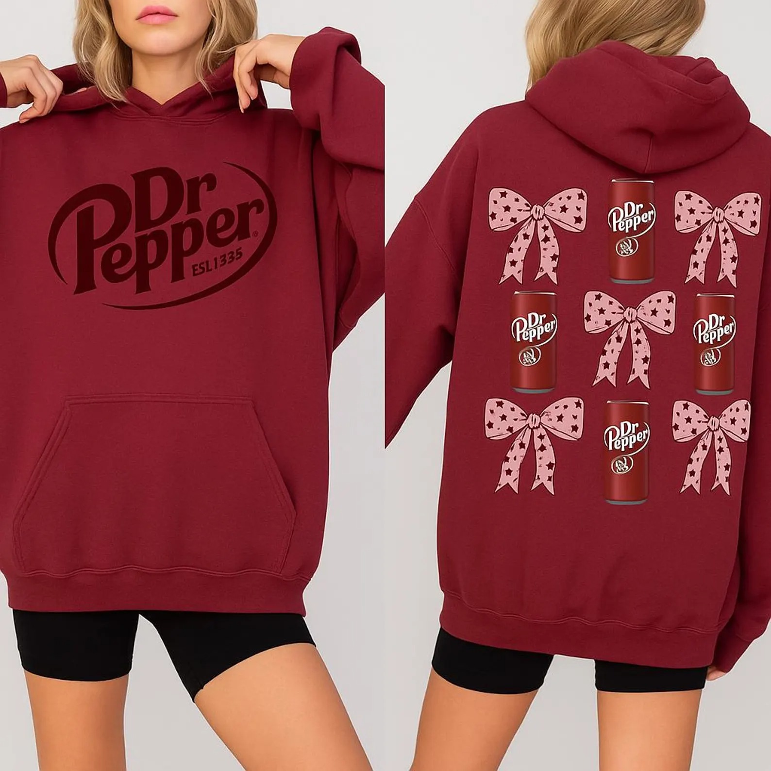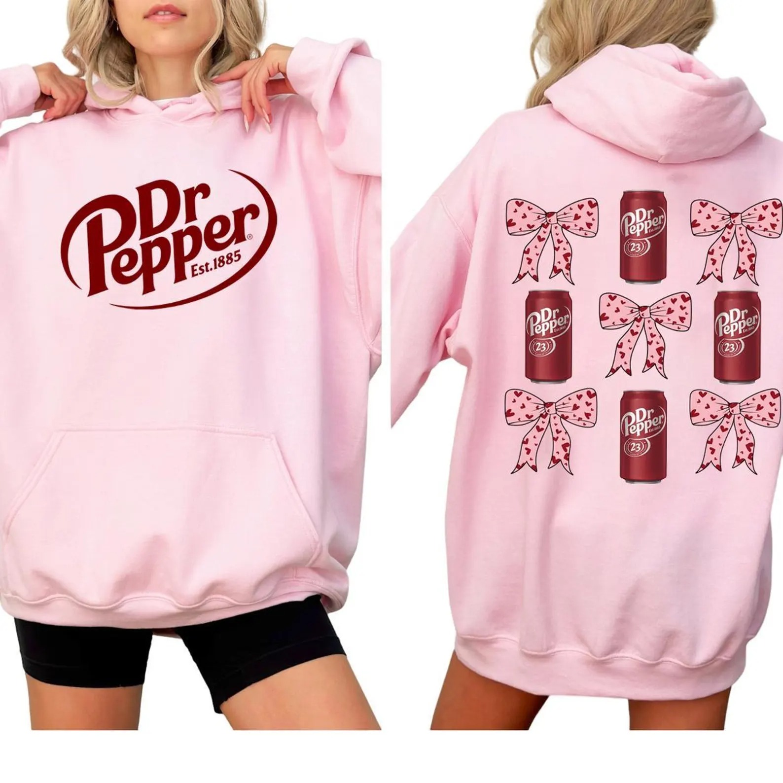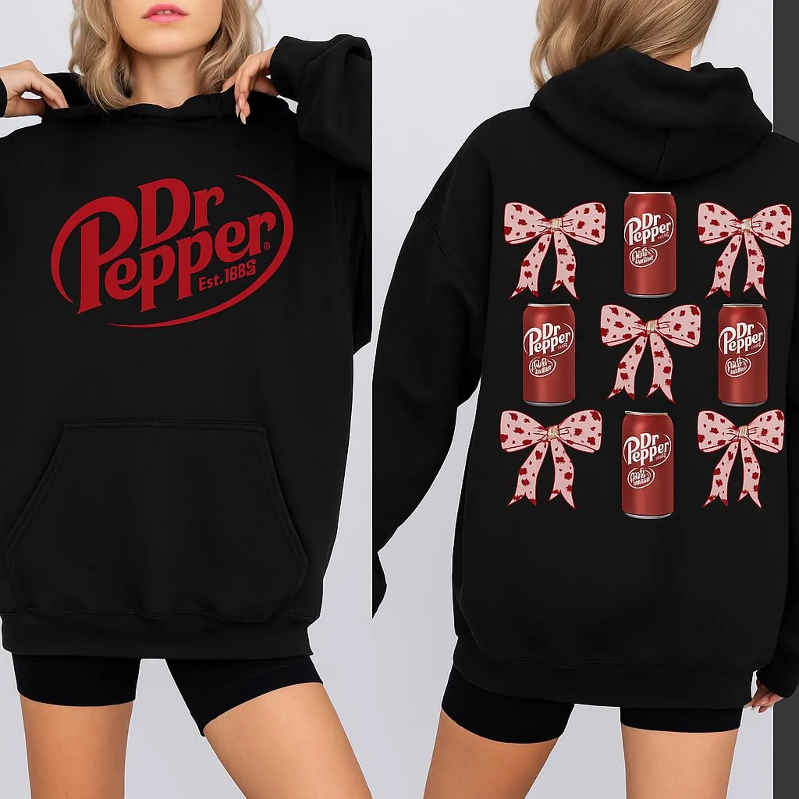 Dr Pepper Can & Bow Hoodie, Retro Soda Lover Pullover