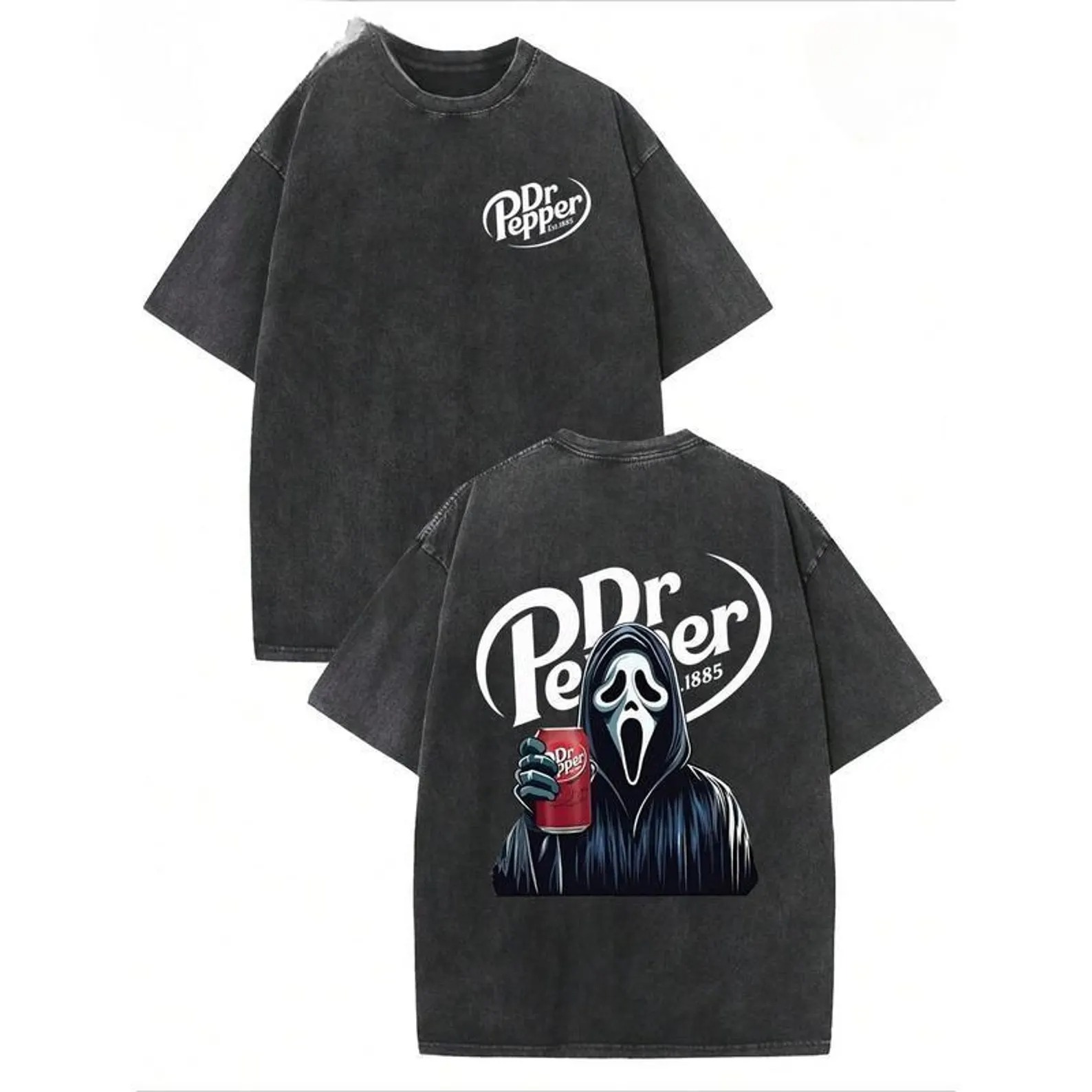 Dr Pepper Ghost Face Washed T Shirt, Double Sided Horror Streetwear Tee, Halloween Vintage Unisex