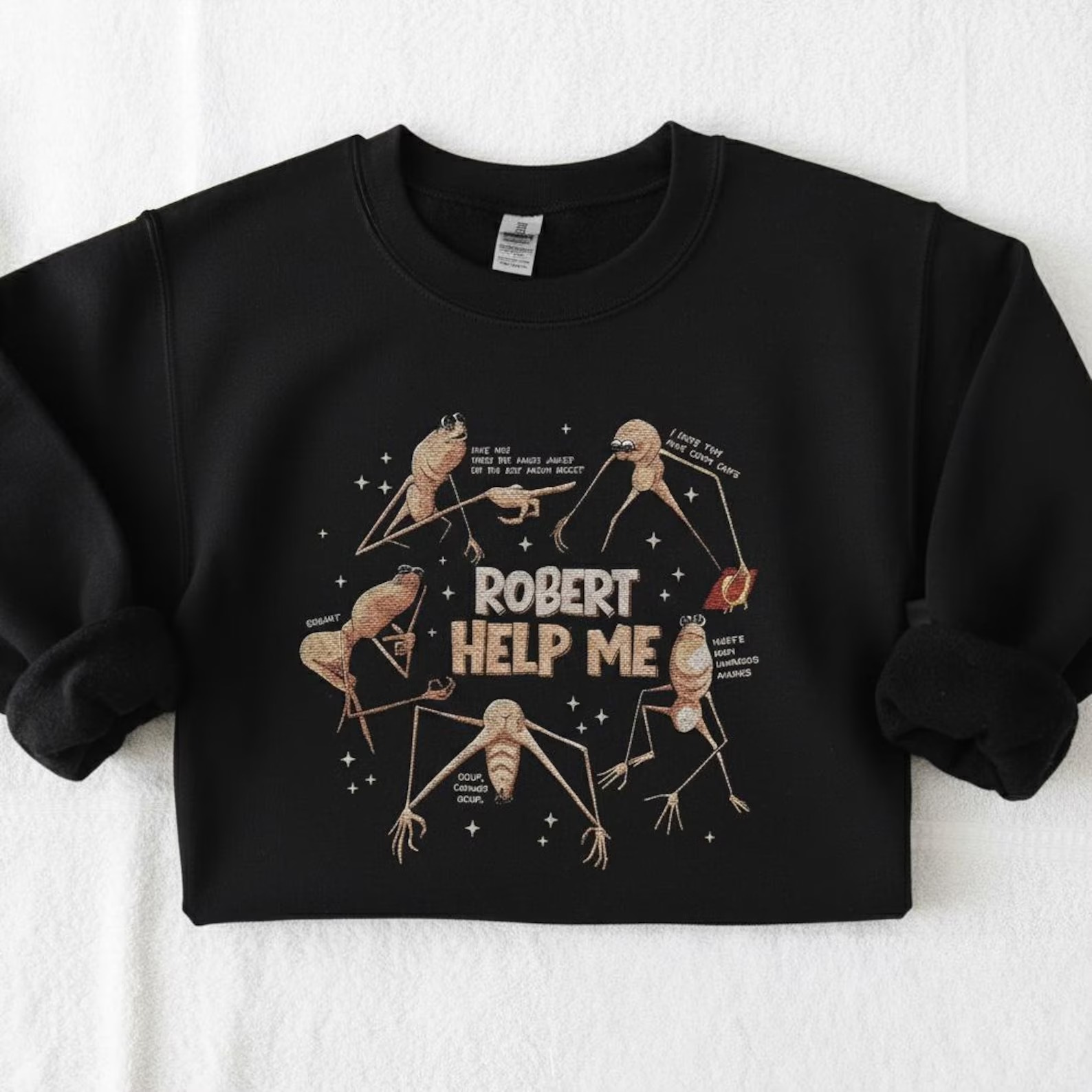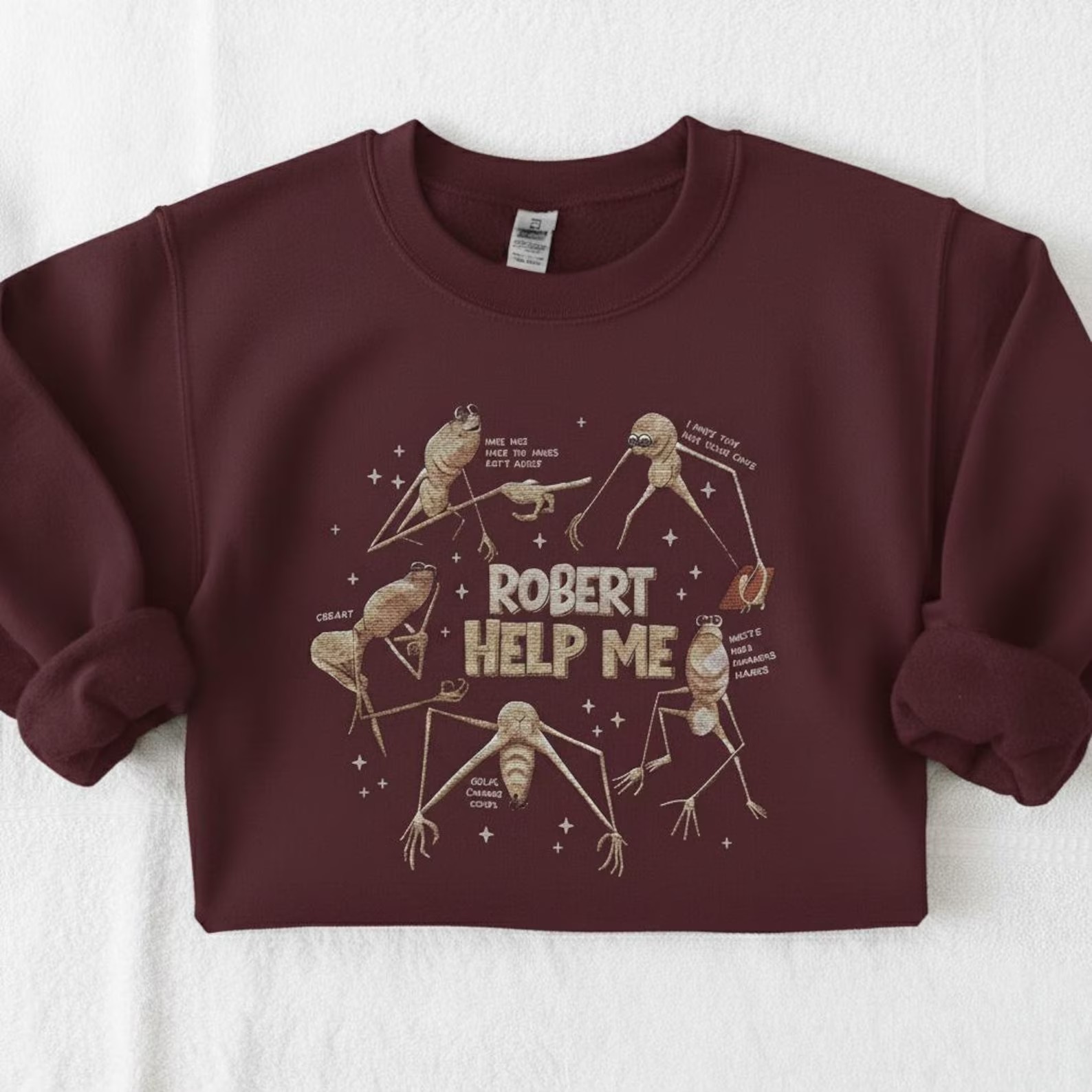EMBROIDERED Marcus The Worm Sweatshirt, Robert Help Crewneck, The Worm Meme Gift for Him, Trending Brain Rot Hoodie