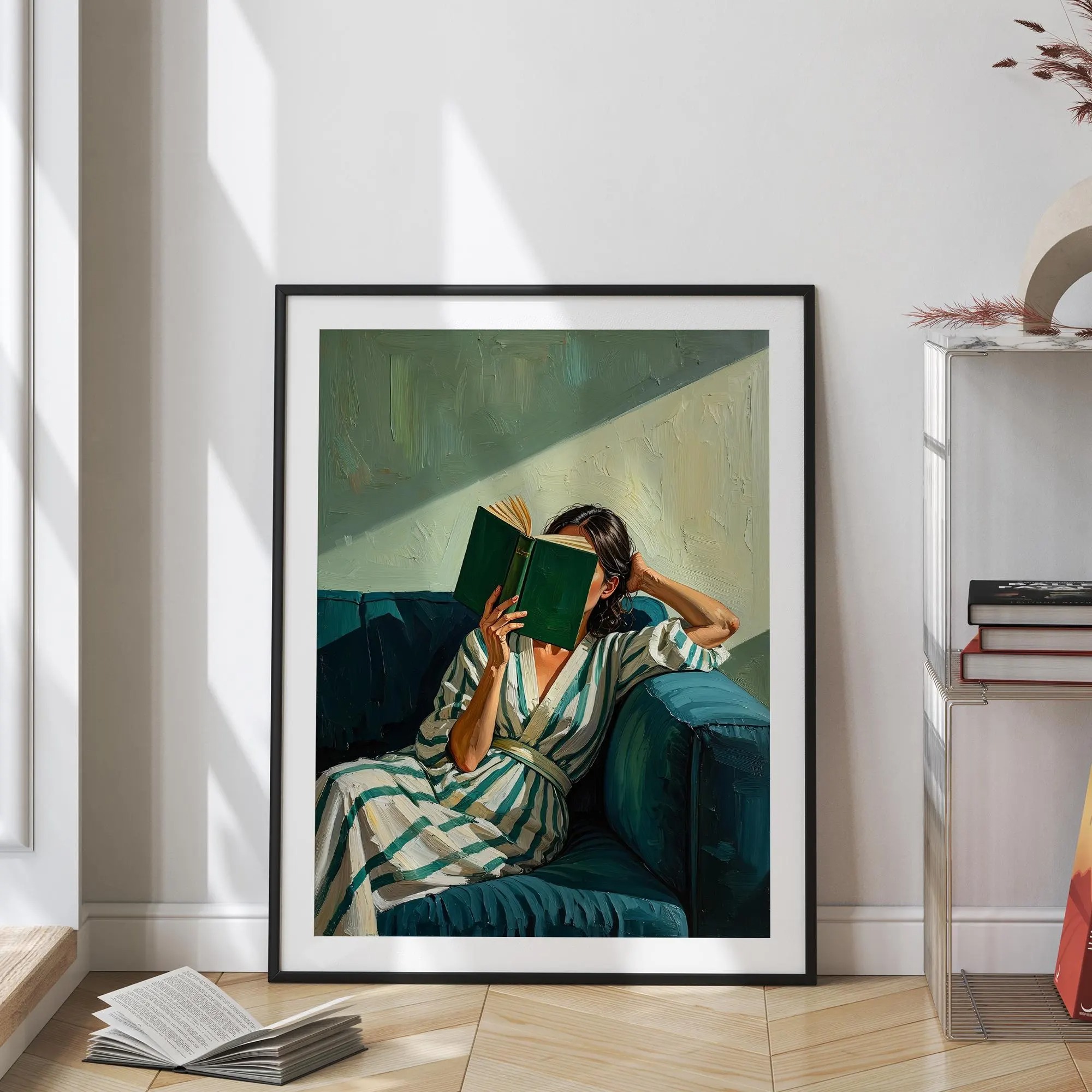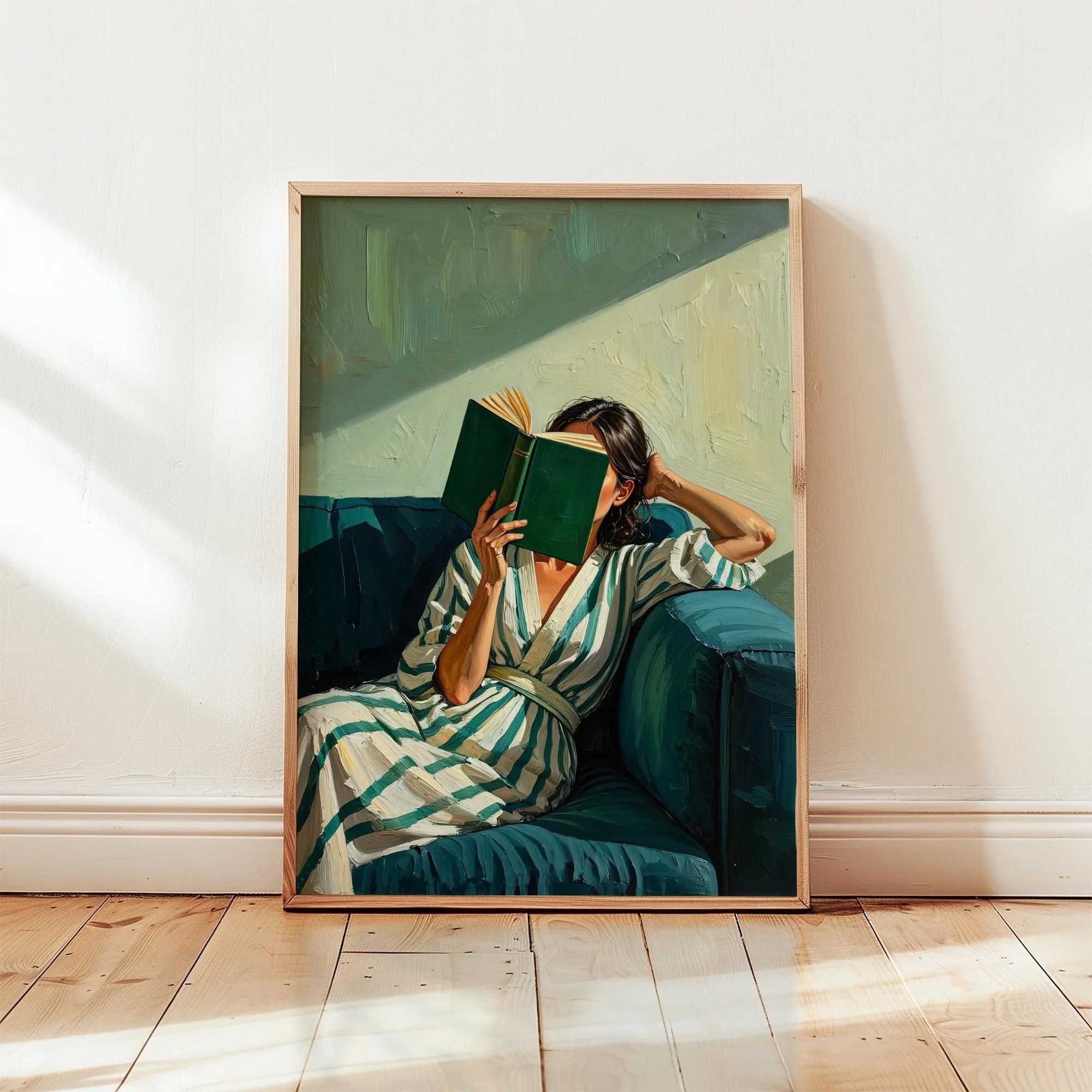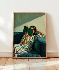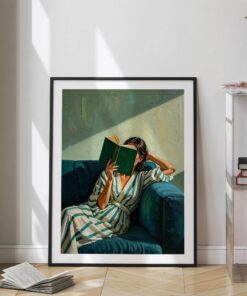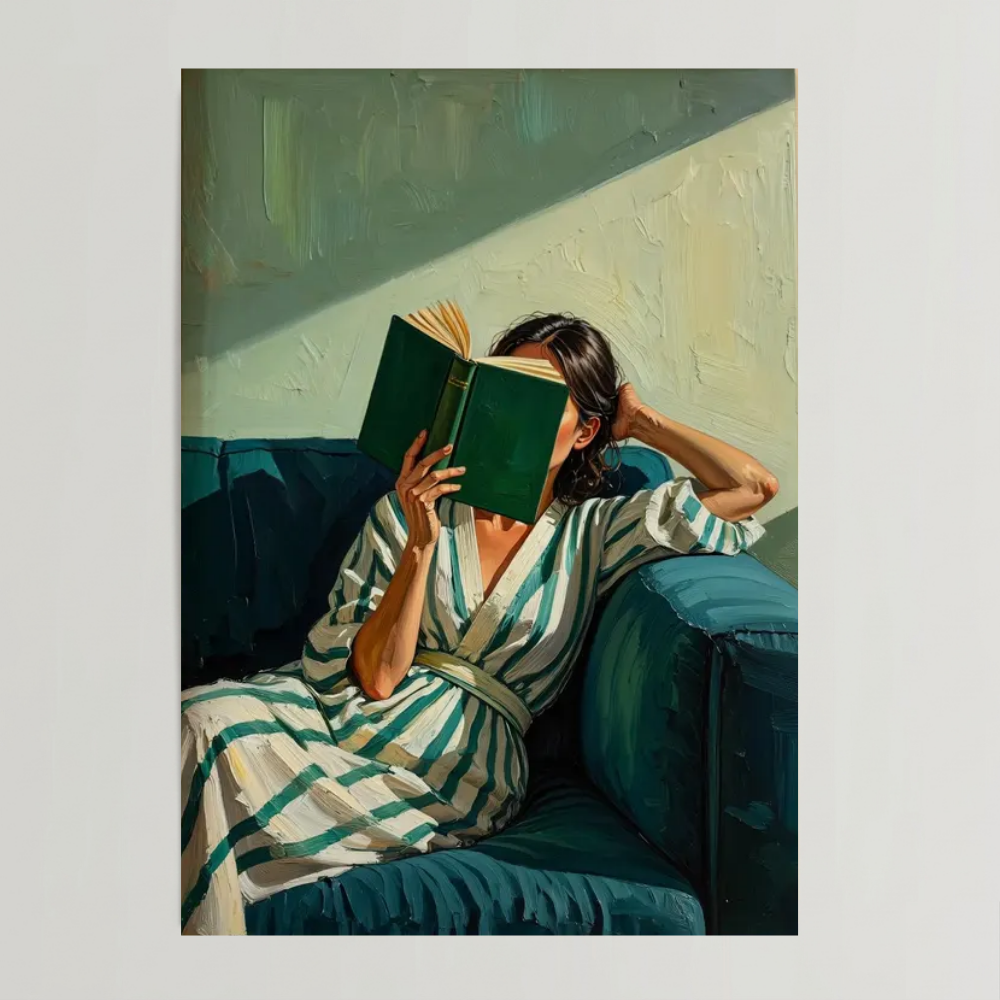 Emerald Green Reading Woman Poster & Canvas, Cozy Contemporary Print For Modern Living Room Decor For Book Nook
