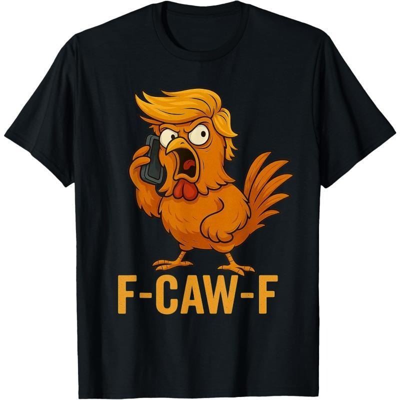 F-Caw-F Funny Chicken Humor Quote Rooster Meme Novelty T-Shirt, Casual Round Neck Design Graphic Tees Streetwear Black Casual Tops for Men Women T-Shirts