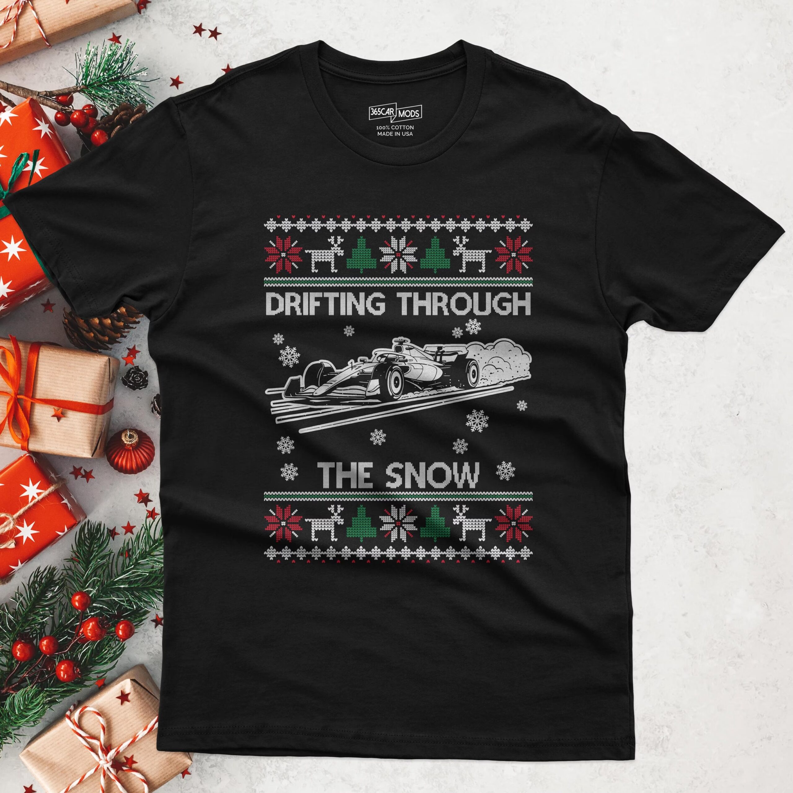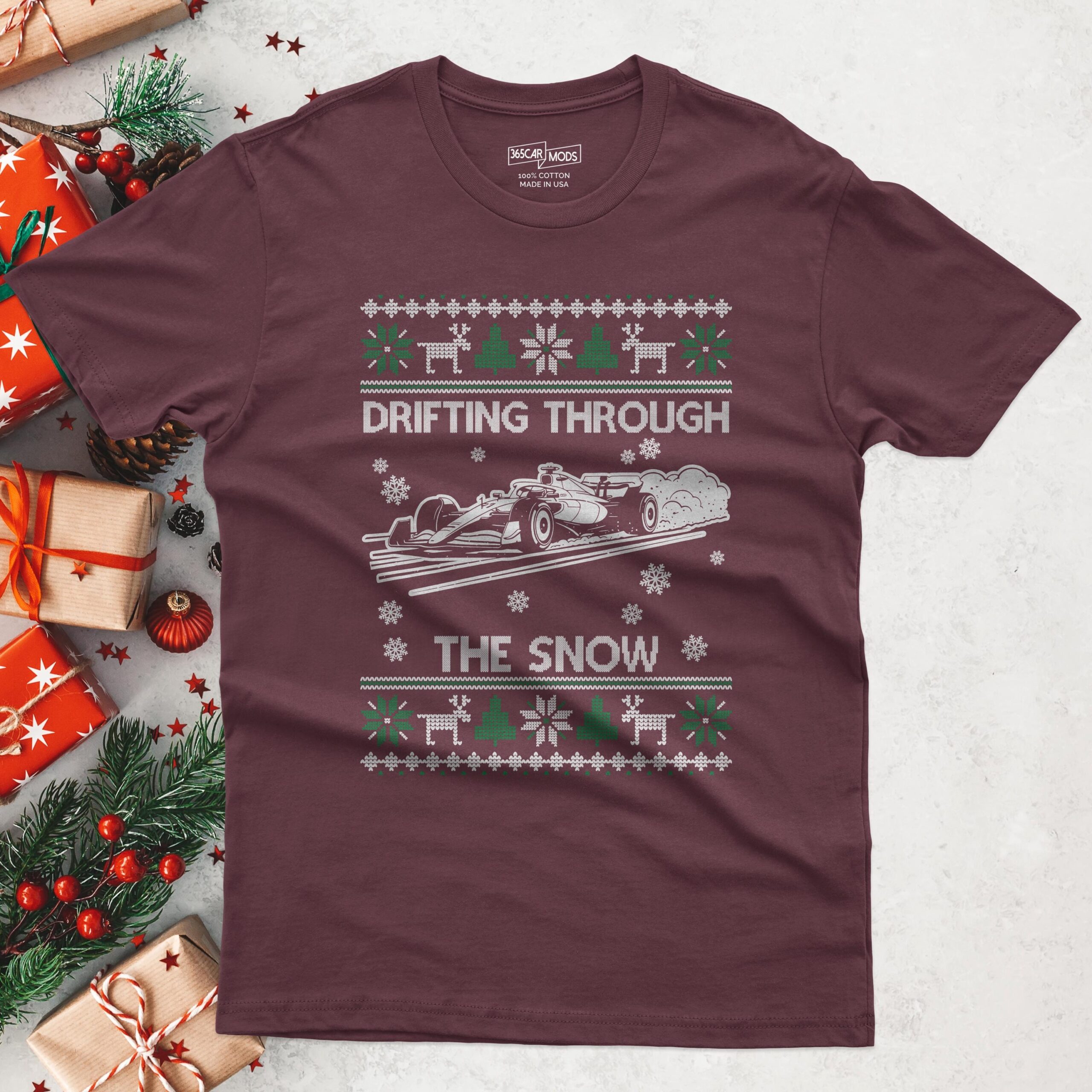 F1 Car Ugly Christmas T-Shirt, Race Fan Holiday Tee