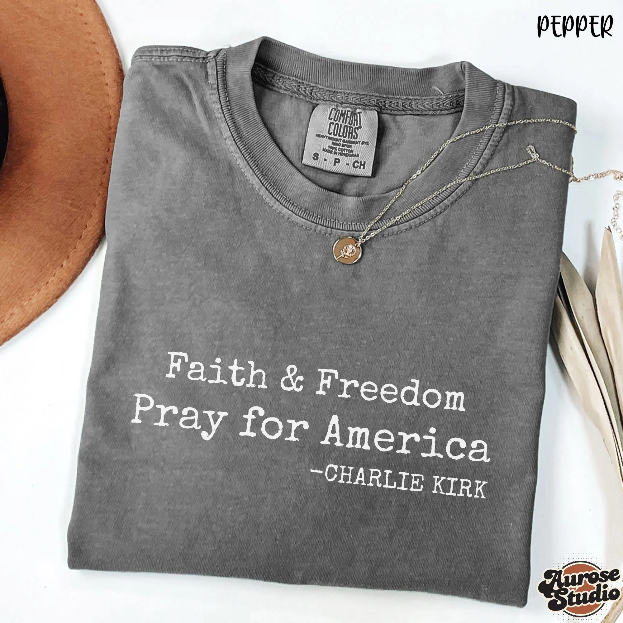 Faith&Freedom Pray for America Shirt, Charlie Kirk Shirt, Support Tee ,Faith Based Unisex Tee, Human Rights Activist Shirt