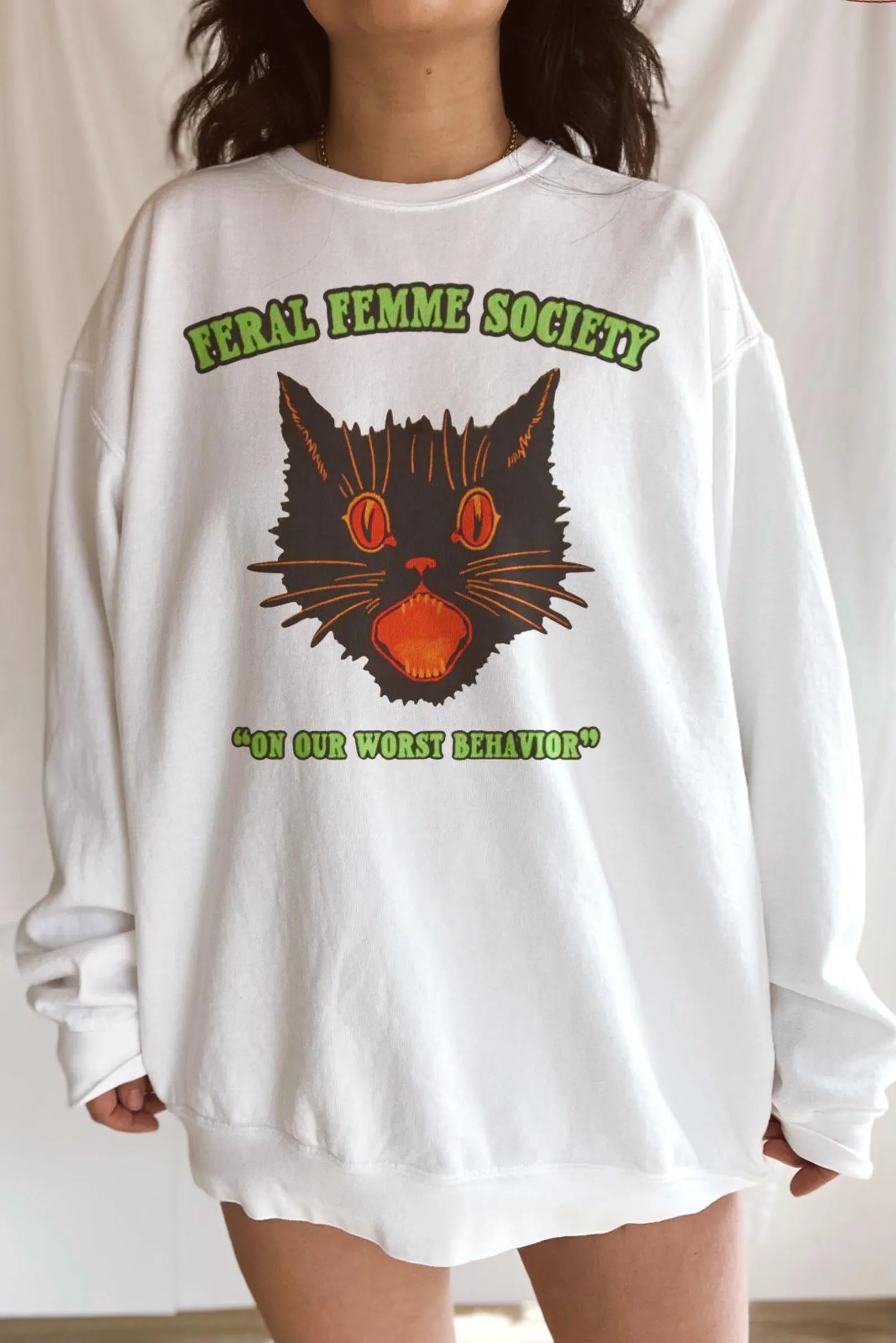 Feral Femme Halloween Sweatshirt, Feminist Girl Power Halloween Sweater
