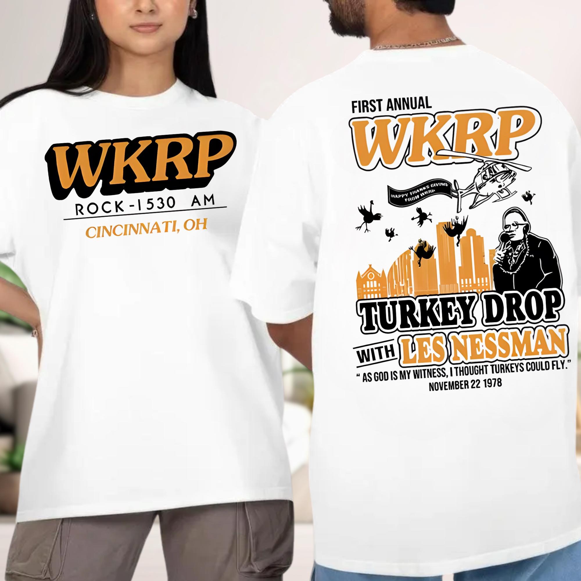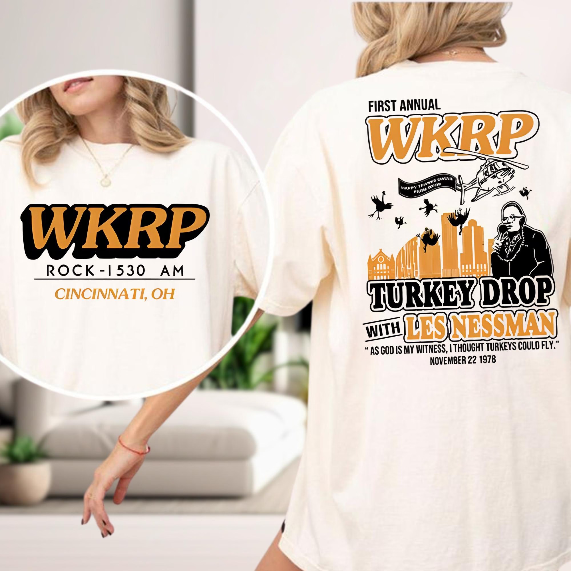 First Annual Wkrp Turkey Drop Two Sides T-Shirt, Thanksgiving Wkrp Shirt, Thanksgiving Day Gifts Hoodie, Graphic Streetwear Sweatshirt