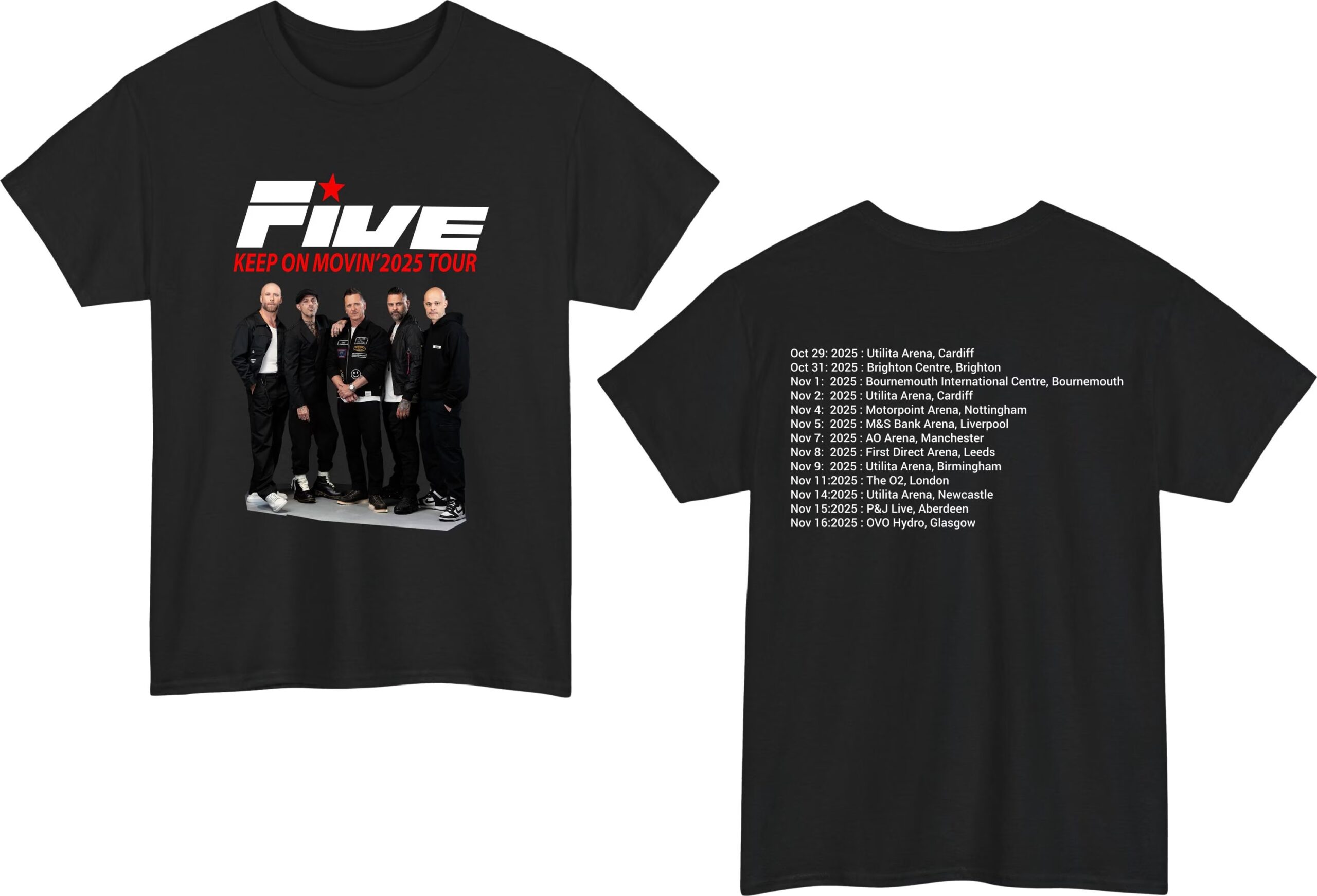 FIVE Keep On Movin’ 2025 Tour Boy Band T-Shirt