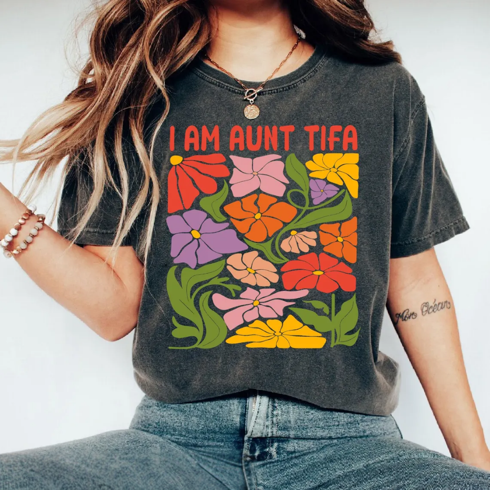 Floral I Am Aunt Tifa Shirt, Political Graphic Tee, Political Awareness, Activist T-Shirt, Fight Fascists, Patriot, Usa Stars Patriotic Gift