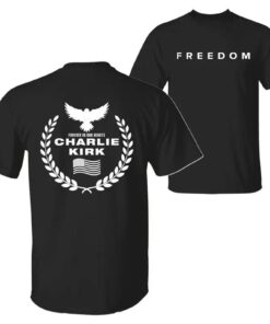 Freedom Charlie Kirk A True American Patriot Eagle Wreath “Forever in Our Hearts” T-Shirt, Prayers Up for Charlie, Human Rights Shirt