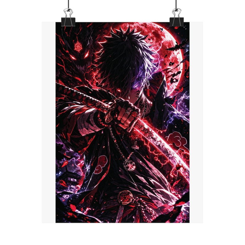 Full Moon Akatsuki Samurai Poster, Anime Sword Wall Art (Matte Vertical Print)