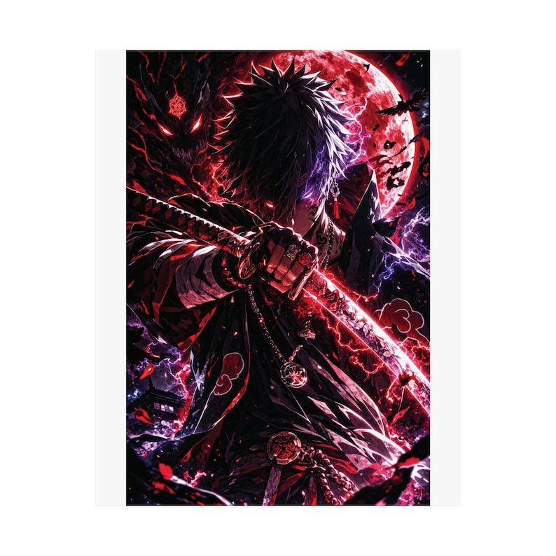 Be the first to review “Full Moon Akatsuki Samurai Poster, Anime Sword Wall Art (Matte Vertical Print)”