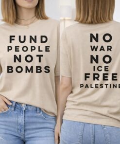 Be the first to review “Fund People Not Bombs T-Shirt 2 Sided, Free Palestine Shirts, No War No Ice Tee”