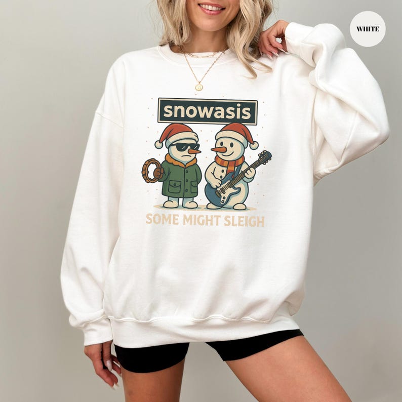 Funny Christmas Sweatshirt SNOWASIS Some Might Sleigh Snowman Rock Band Parody Holiday Gifts for Music Lovers & Fans Christmas Jumper