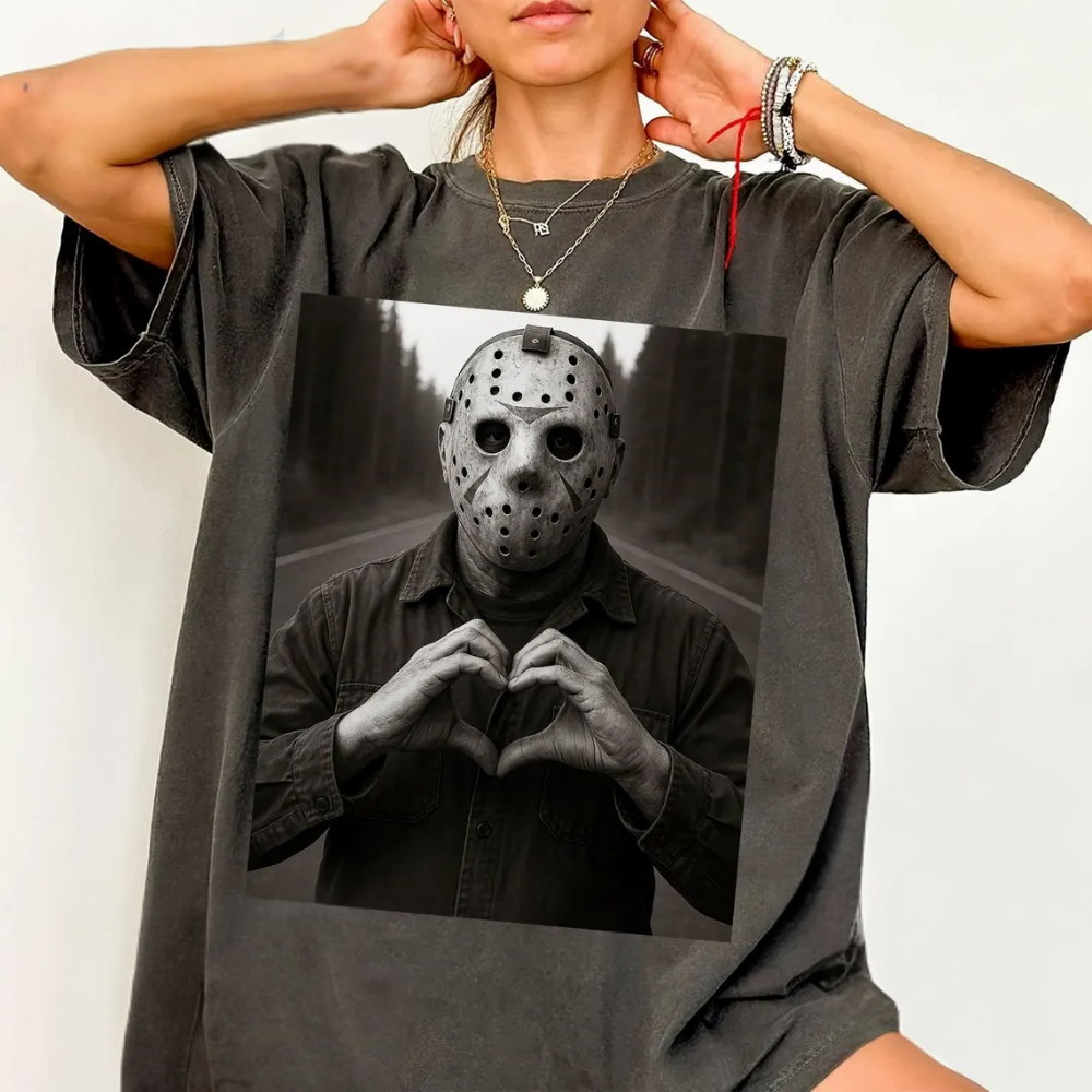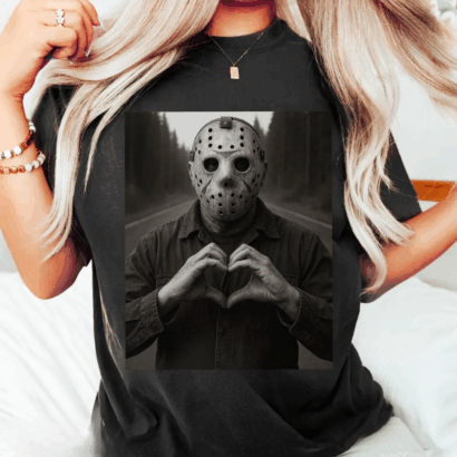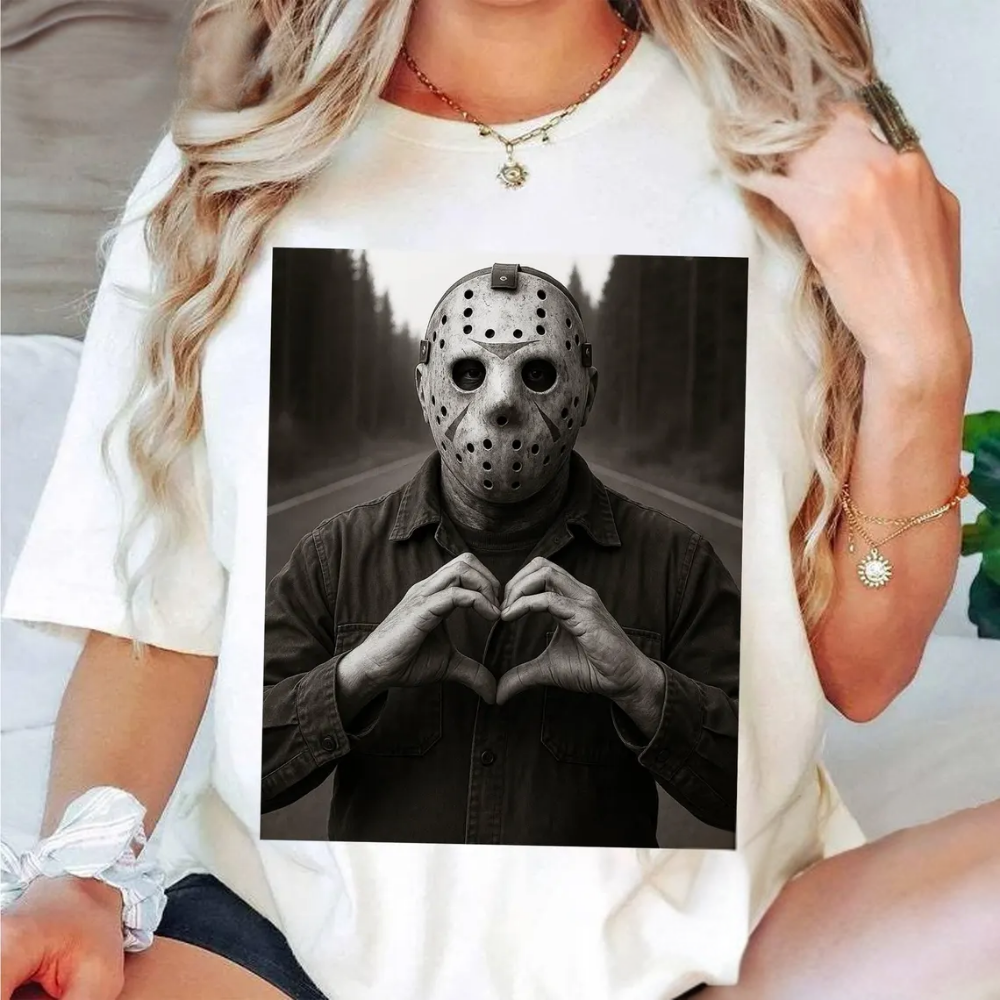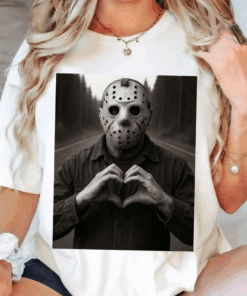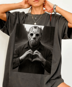 Funny Jason Voorhees, Horror Character Selfie Halloween Meme Tee, Jason Voorhees Heart Hands Shirt, Retro Horror Character Top