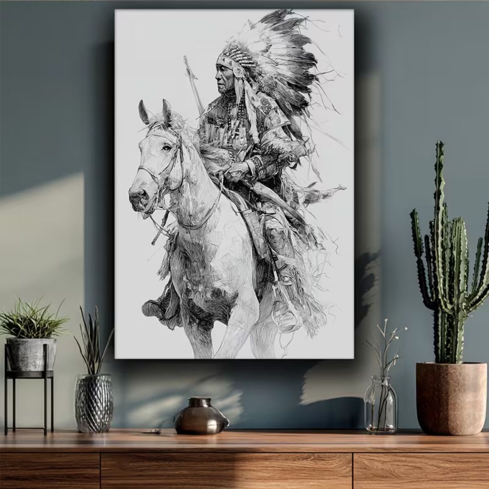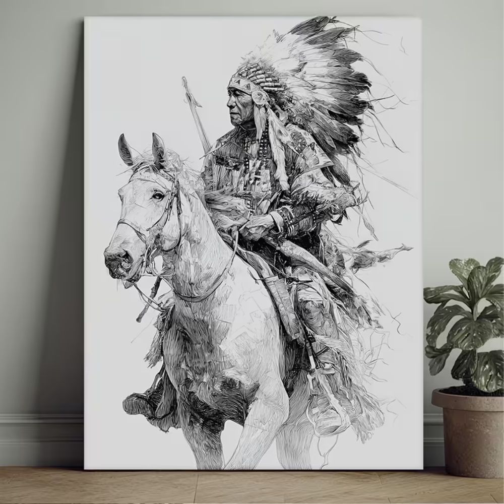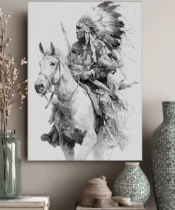 Be the first to review “Funny Manga Style Native American Warrior on Horse Black and White Tribal Art”