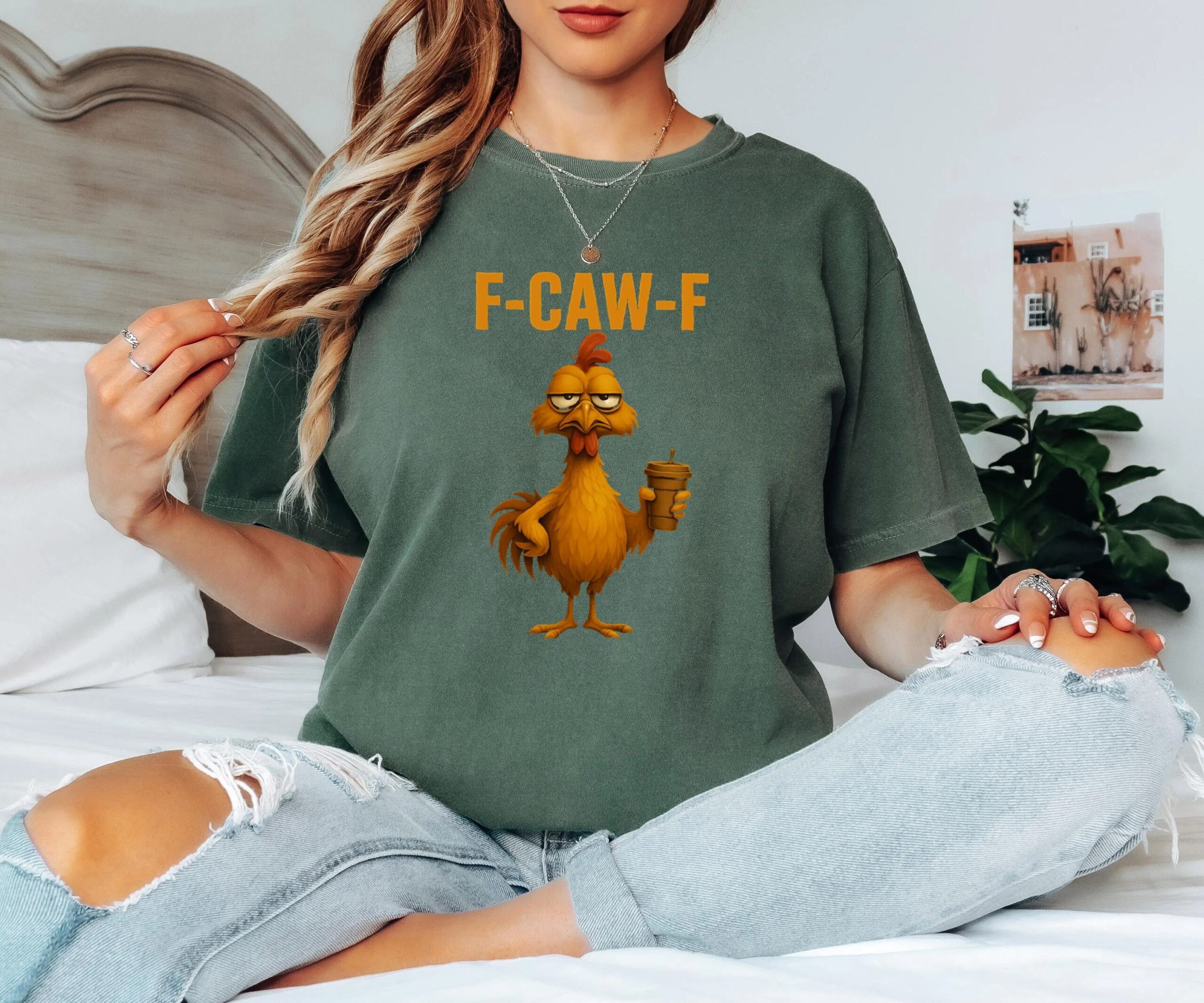 Funny Rooster Meme Shirt, F-CAW-F Chicken Humor Tee, Silly Farm Animal Graphic Top, Birthday Gift for Men Women