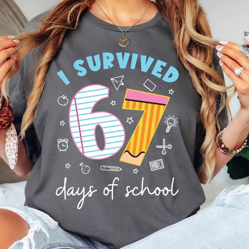 Funny school shirt I survived 67 days six seven 67 text tshirt 6 7 Meme shirt 67 drip shirt 67 six seven tshirt 6 7 shirt gift