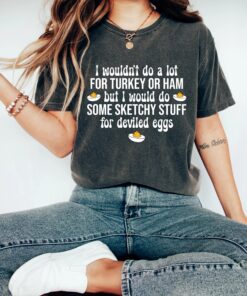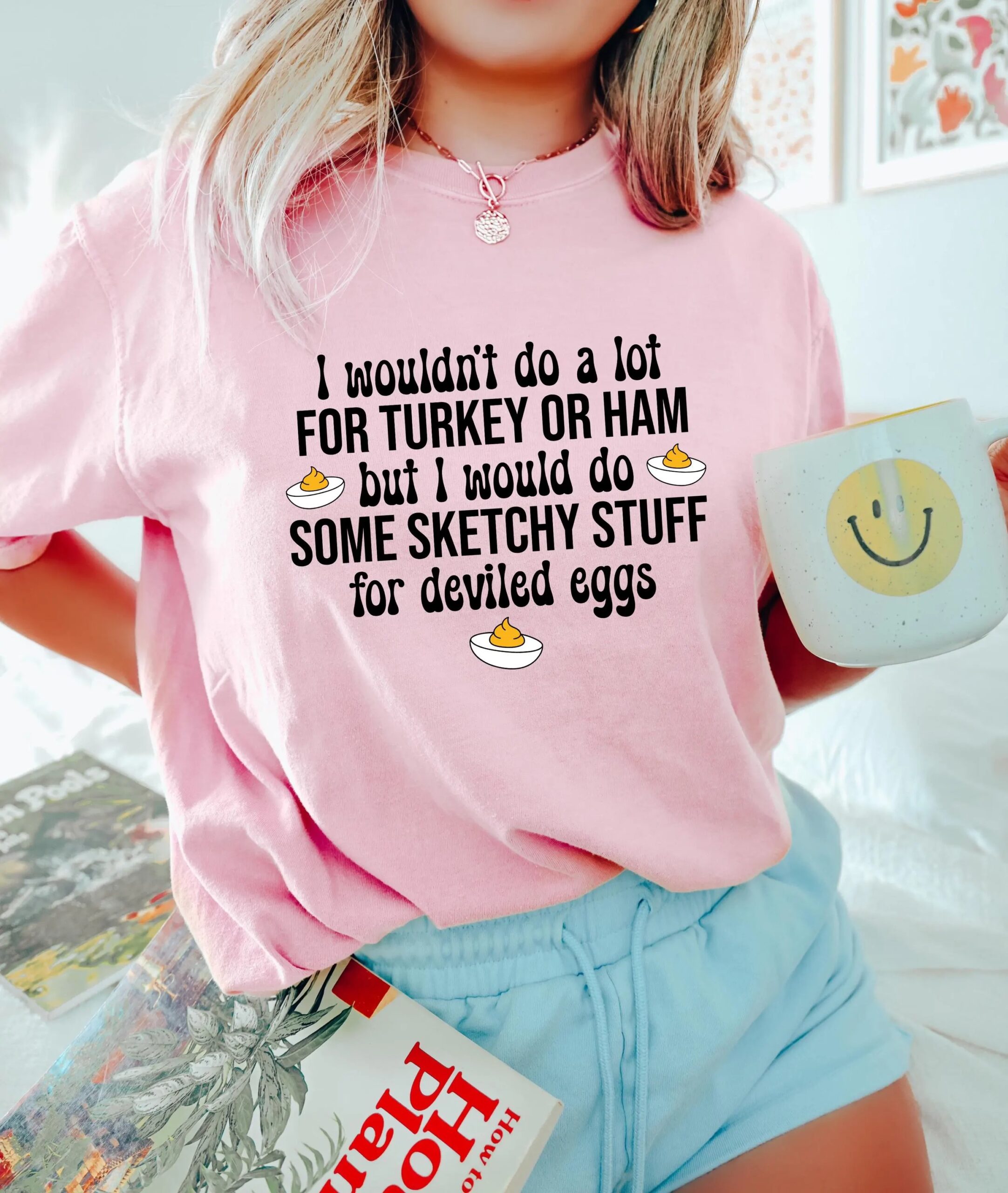 Funny Thanksgiving Shirt, I Would Do Sketchy Stuff For Deviled Eggs T-Shirt, Thanksgiving Humor Tee, Deviled Eggs Lover Gift