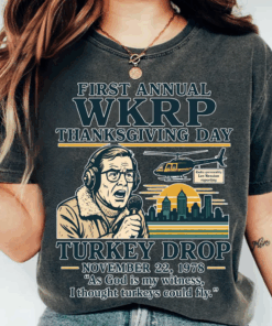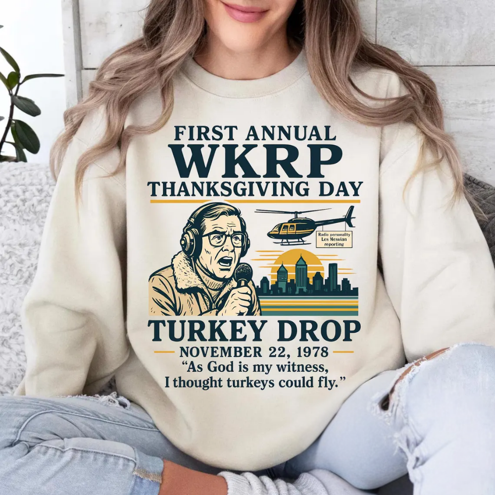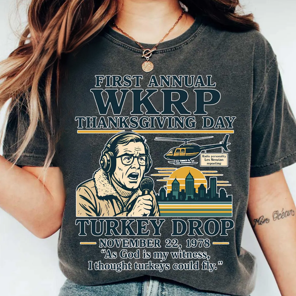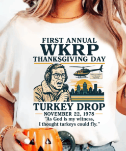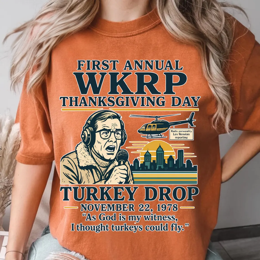Funny Thanksgiving WKRP Turkey Drop T-Shirt, Sweatshirt, Hoodie, First Annual WKRP Thanksgiving Day Cincinnati OH Tee