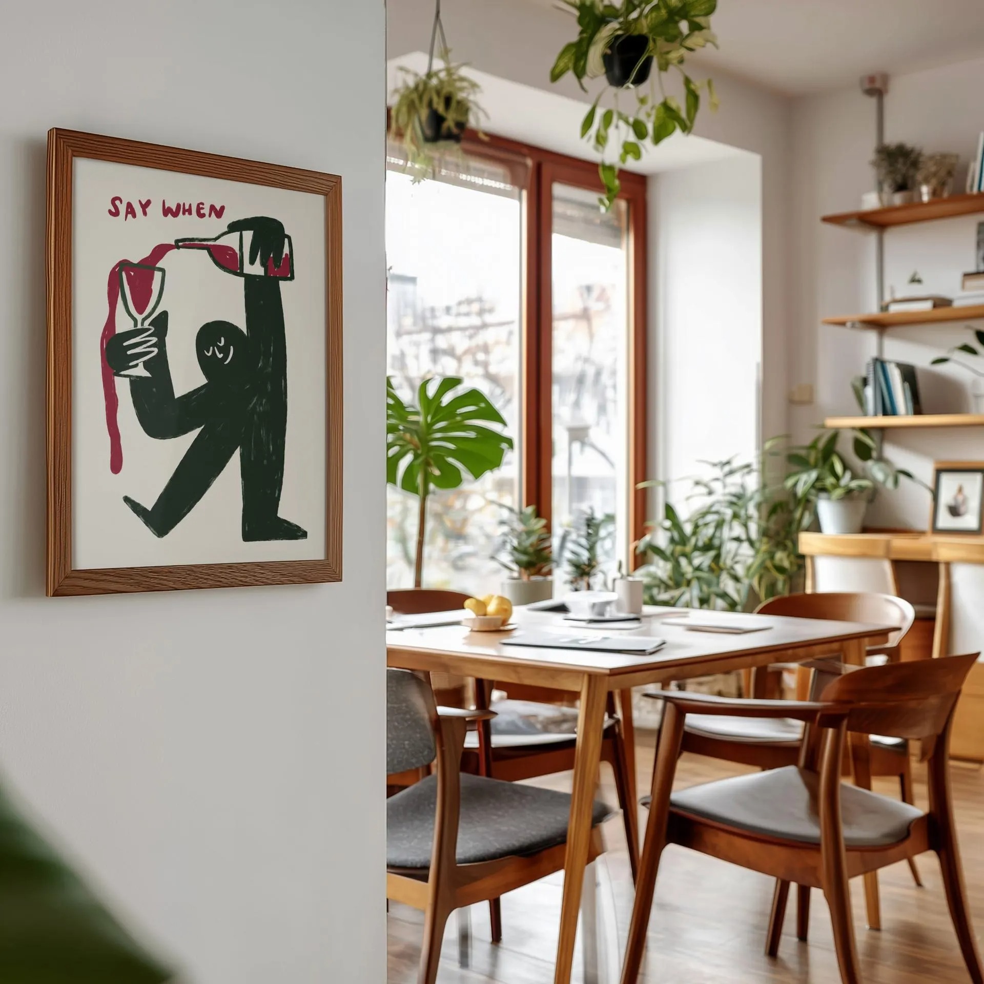 Funny Wine Wall Art, Kitchen Bar Decor, Say When Print, Bar Cart Poster
