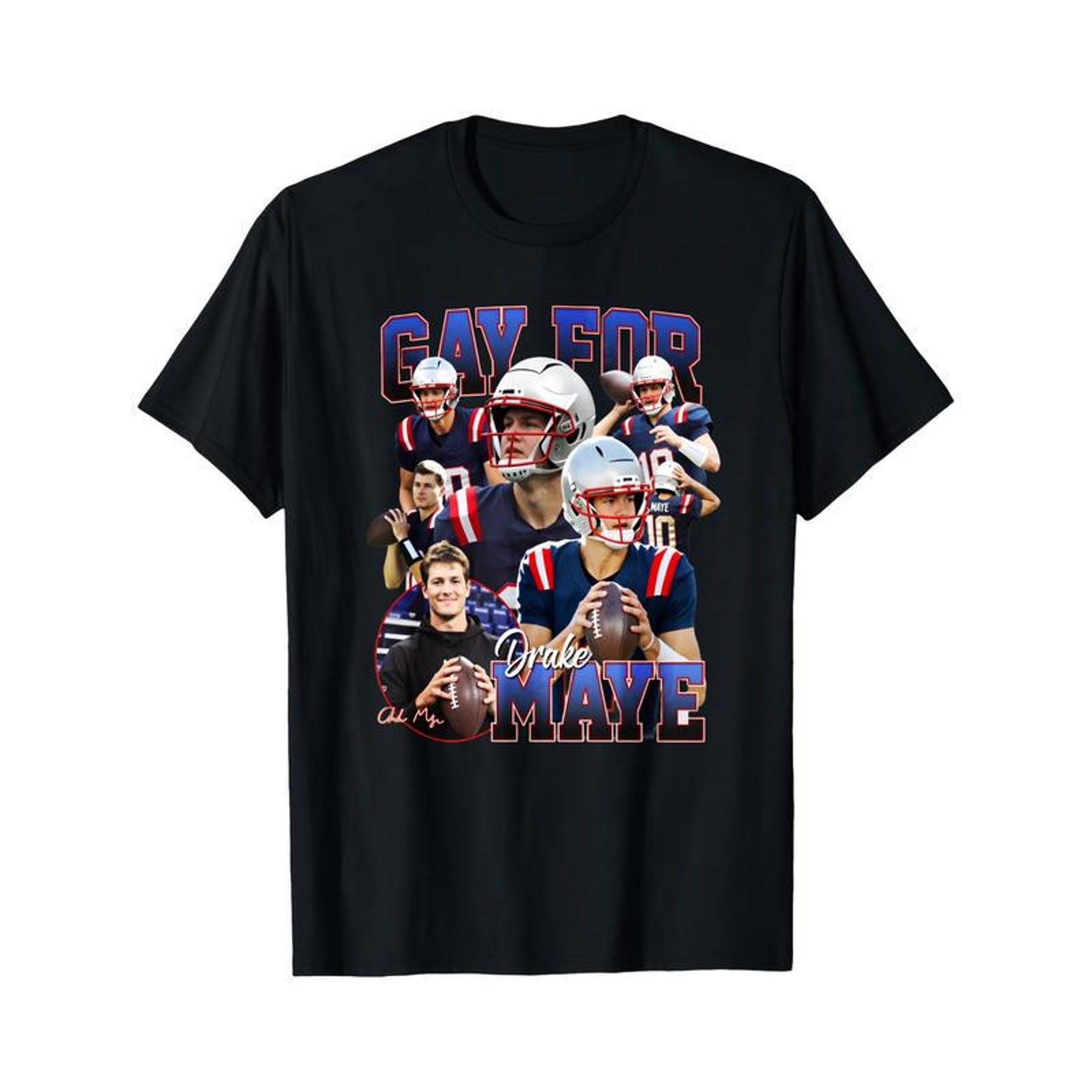 Gay For Drake Maye Shirt, Black Football Player Collage Graphic T-Shirt, Unisex Streetwear Sports Fan Tee, Game Day Outfit, Gift for Fans