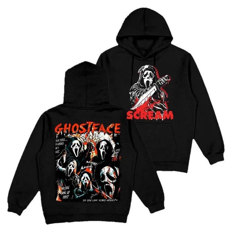 Ghostface Hoodie, Sweatshirt, T-Shirt, Horror Movie Merch, Halloween Horror Characters Hoodie, Men Halloween Scary Pullover Sweatshirt