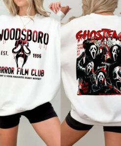 Ghostface Woodsboro Horror Film Club Hoodie, Sweatshirt and T-Shirt, Horror Scary Merch, Halloween Horror Character Top, Halloween Scary Tee