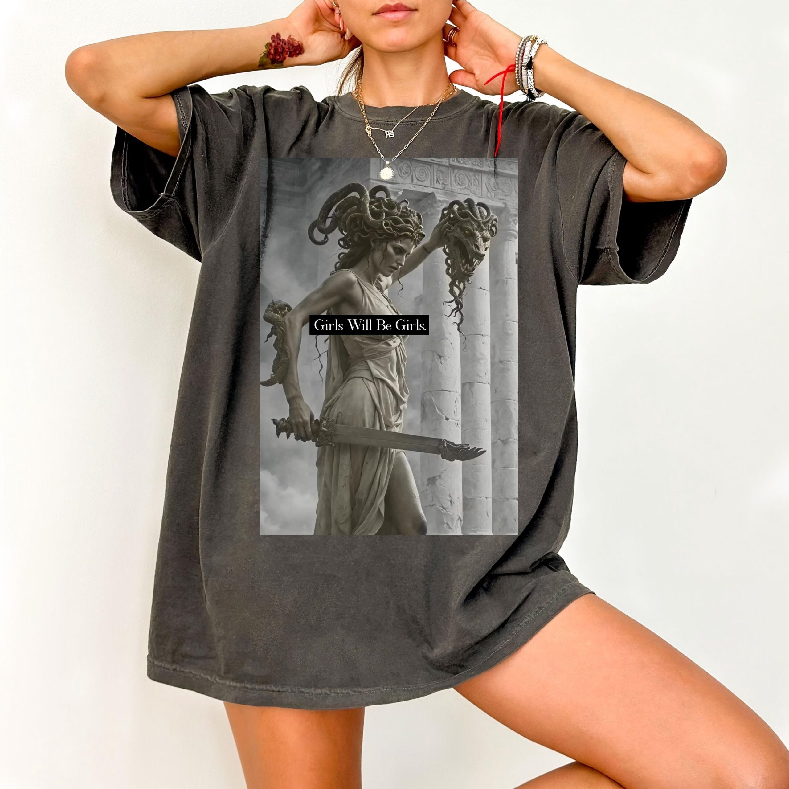 Girls Will Be Girls Shirt, Medusa with the Head of Perseus Tee, Feminist Shirt, Women’s Empowerment Shirt, Feminism Shirt, Gift for Her