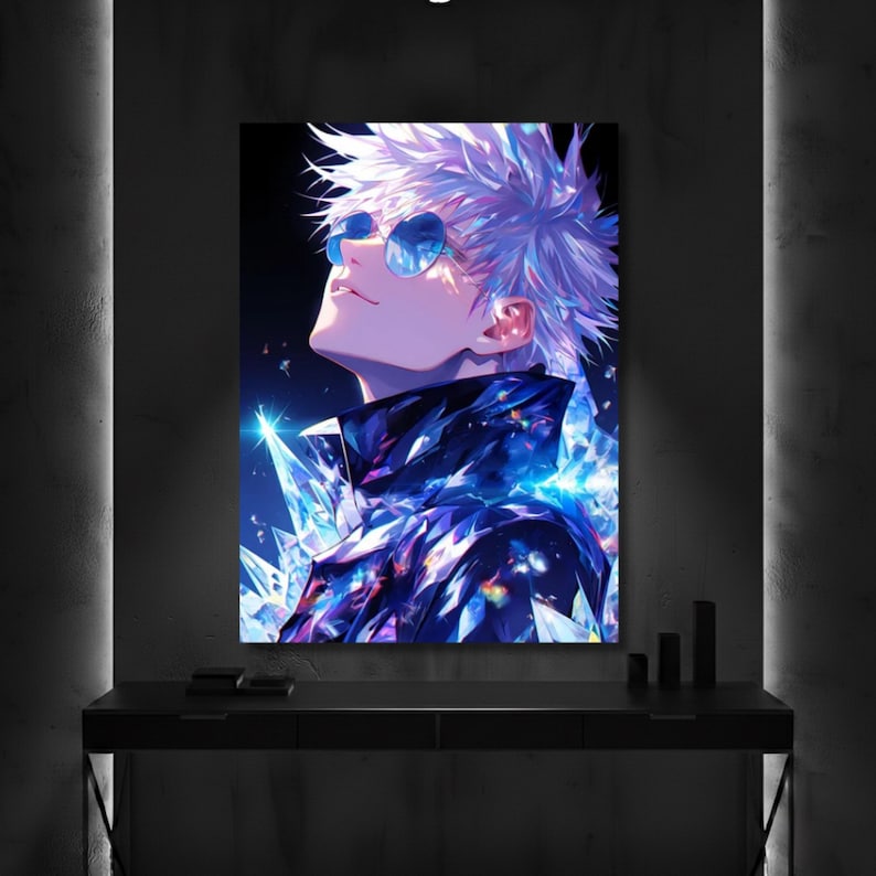 Gojo Satoru Radiant Metal Poster, Jujutsu Kaisen Wall Art, Six Eyes Decor, Metal Sign