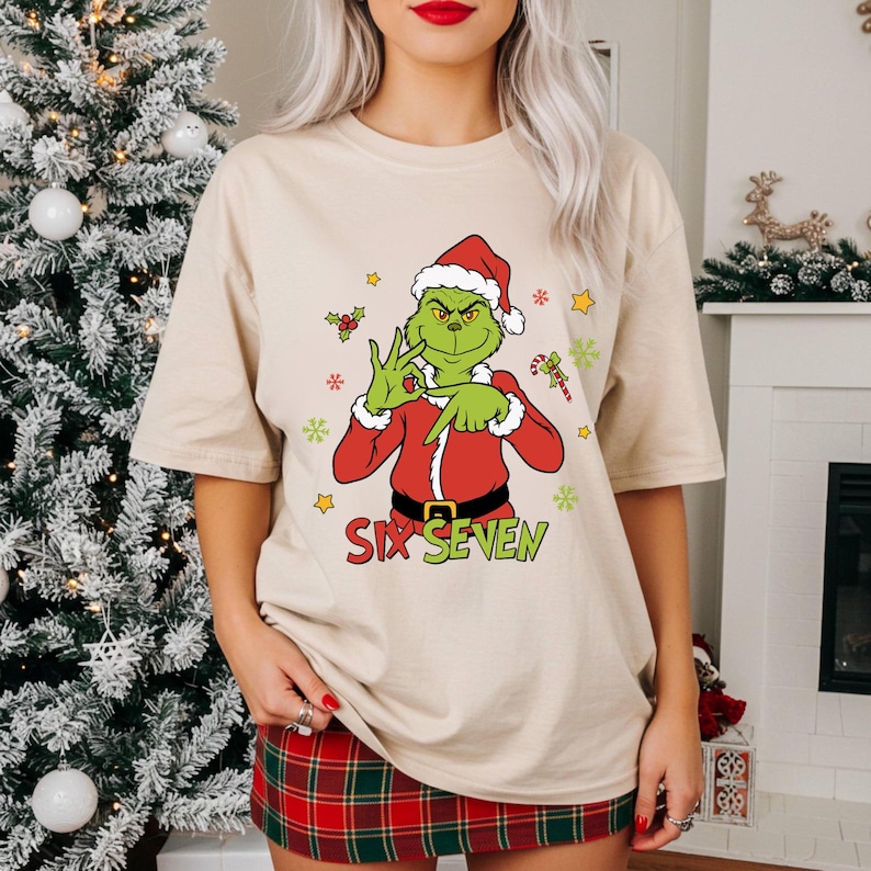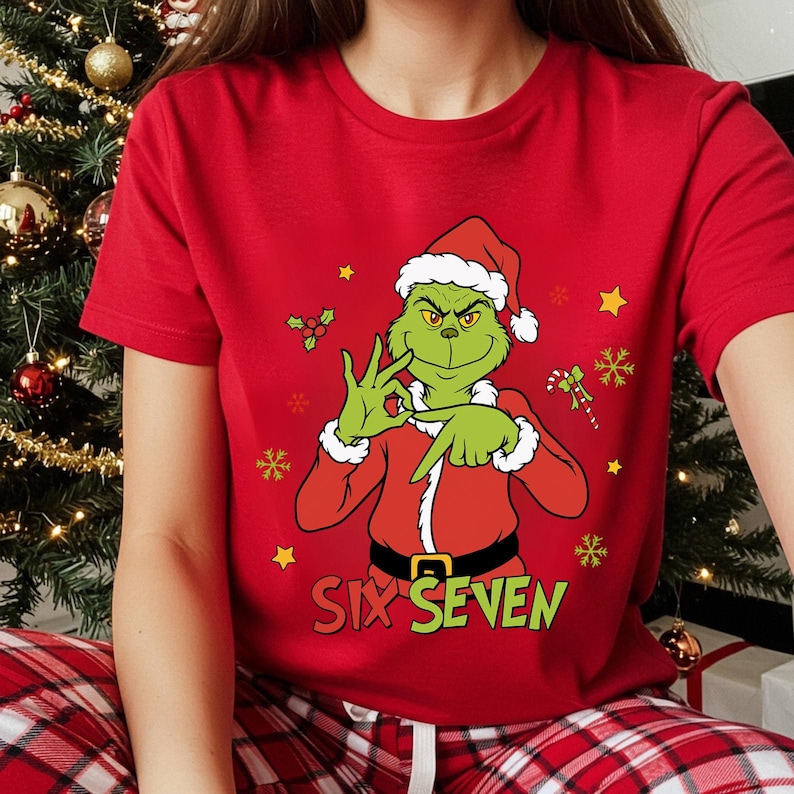 Grinch Christmas Shirt, 67 Trend Tee, Six Seven Meme Xmas Pullover, Gen Z Viral Funny Tee, Kids Holiday Tee