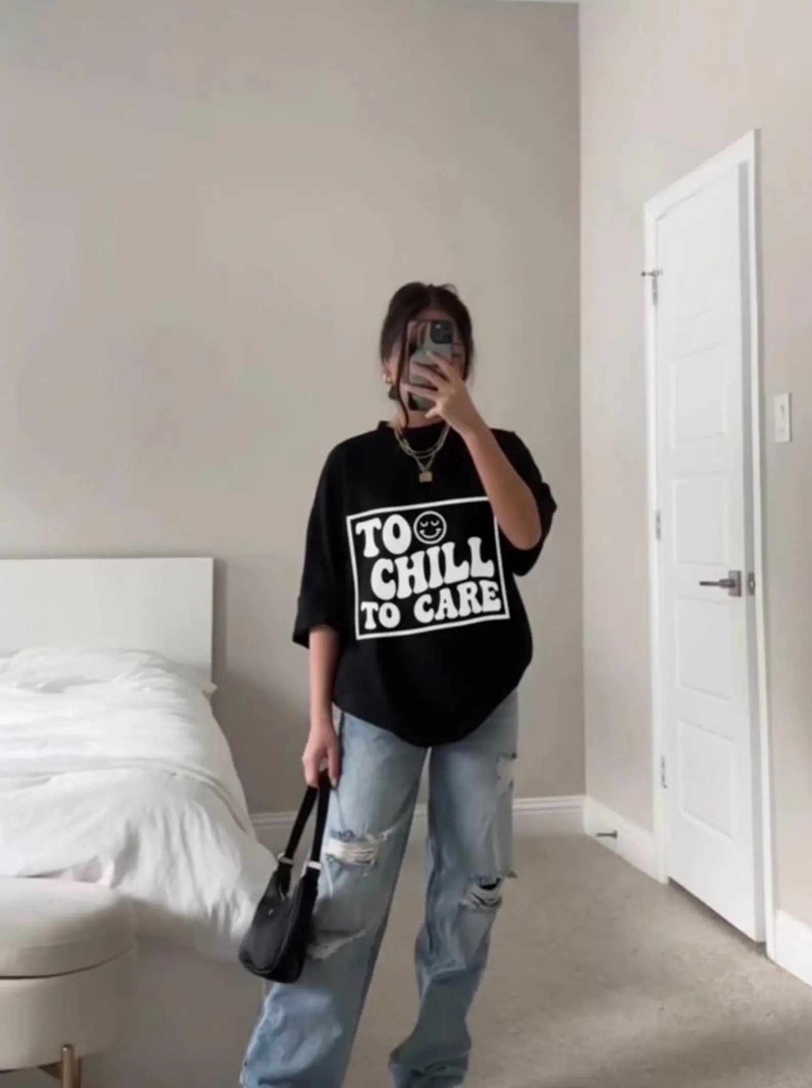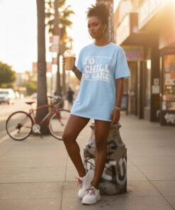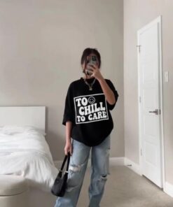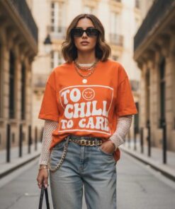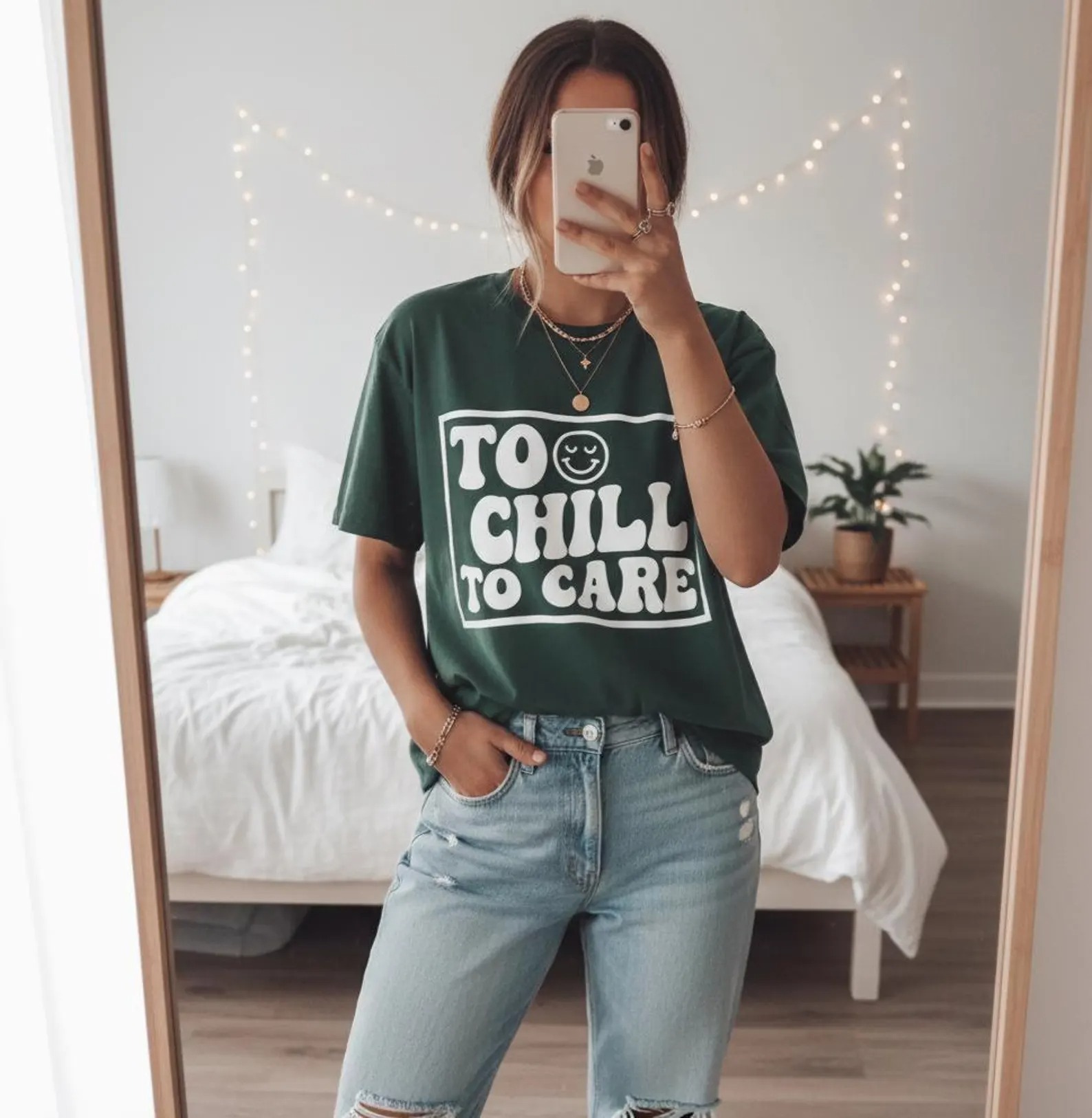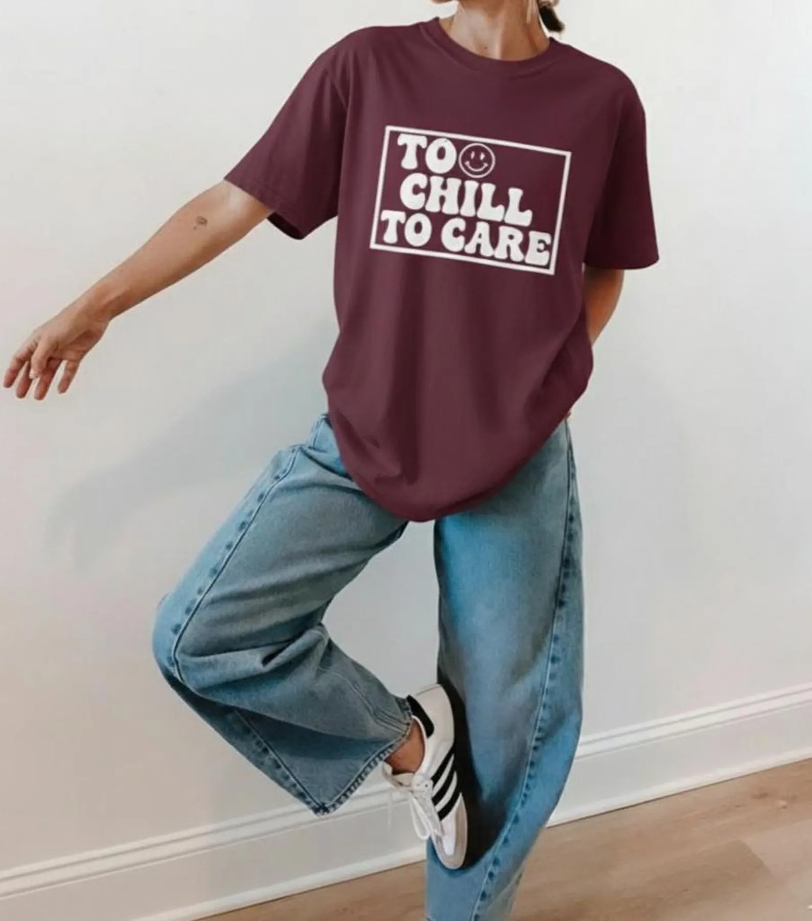 Groovy ‘Too Chill To Care’ T-Shirt, Oversized Graphic Tee, Trendy Retro Slogan Shirt, Aesthetic Top, Gift Friends, Best Friends