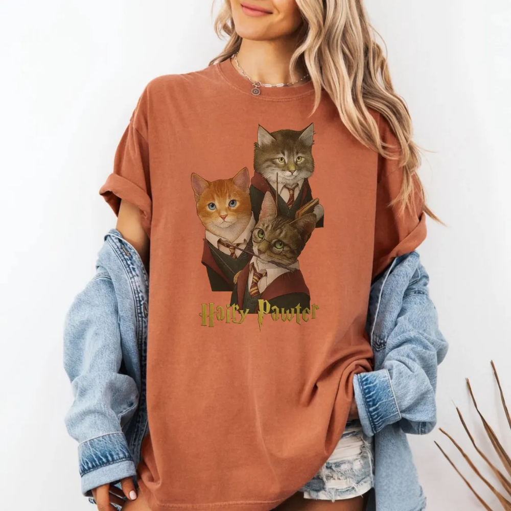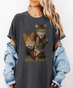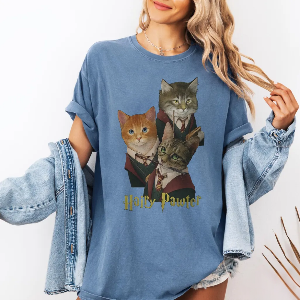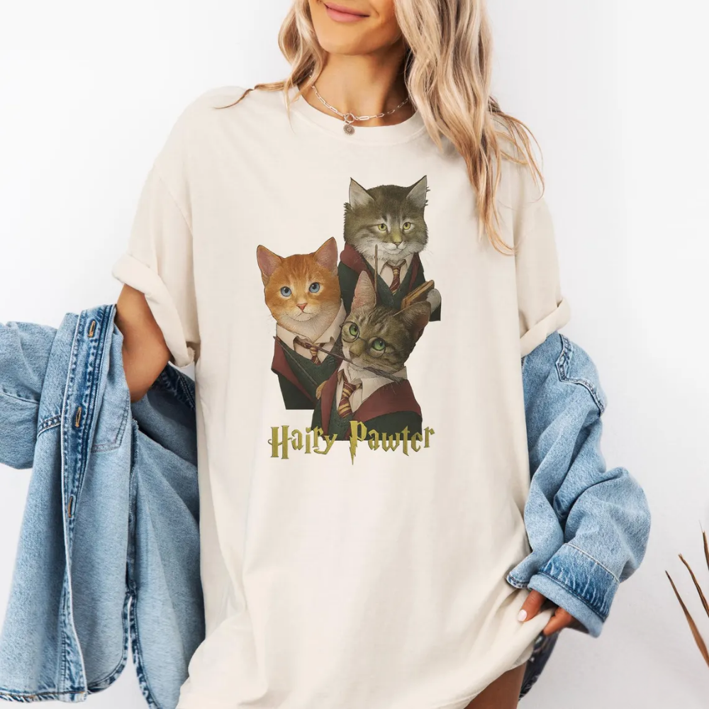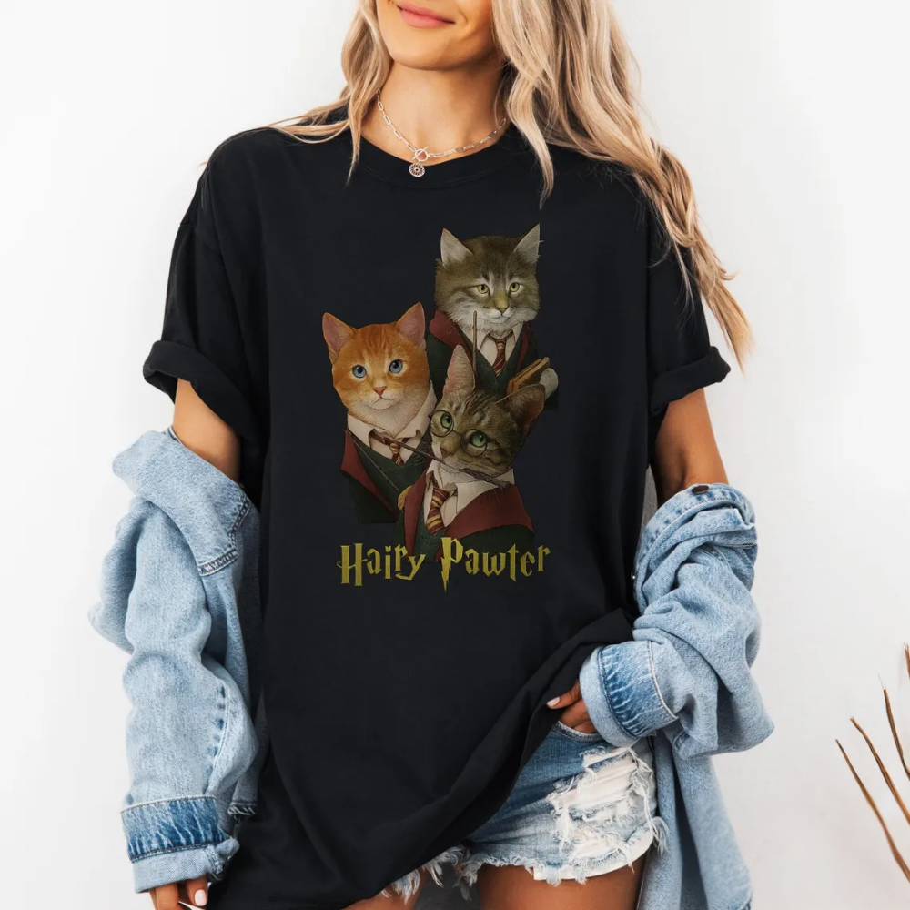 Hairy Pawter Vintage 90s Graphic Shirt, Retro Funny Cat T-Shirt, Cat Wizard Fantasy Top, Wizarding School Tee, Reader Gift