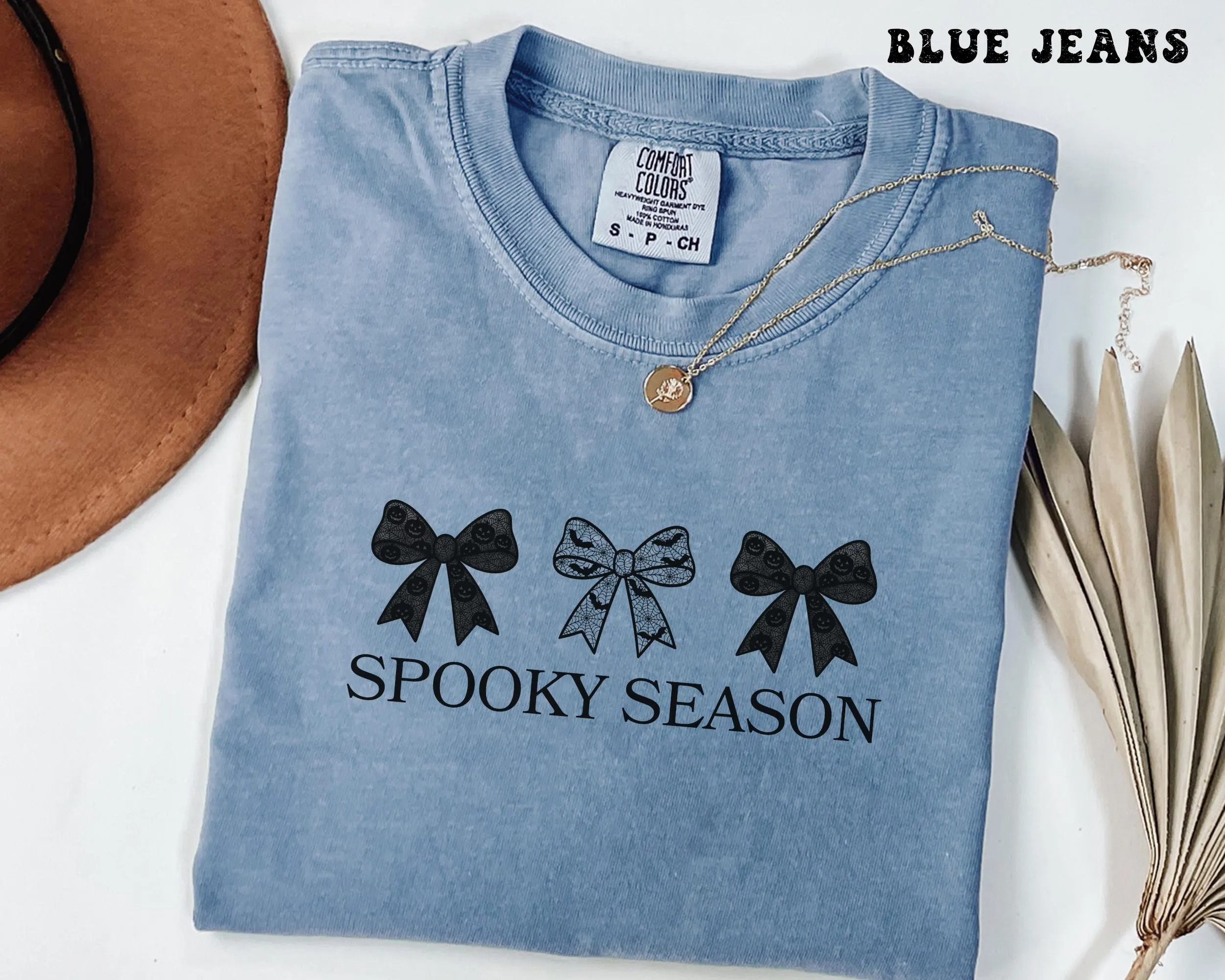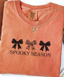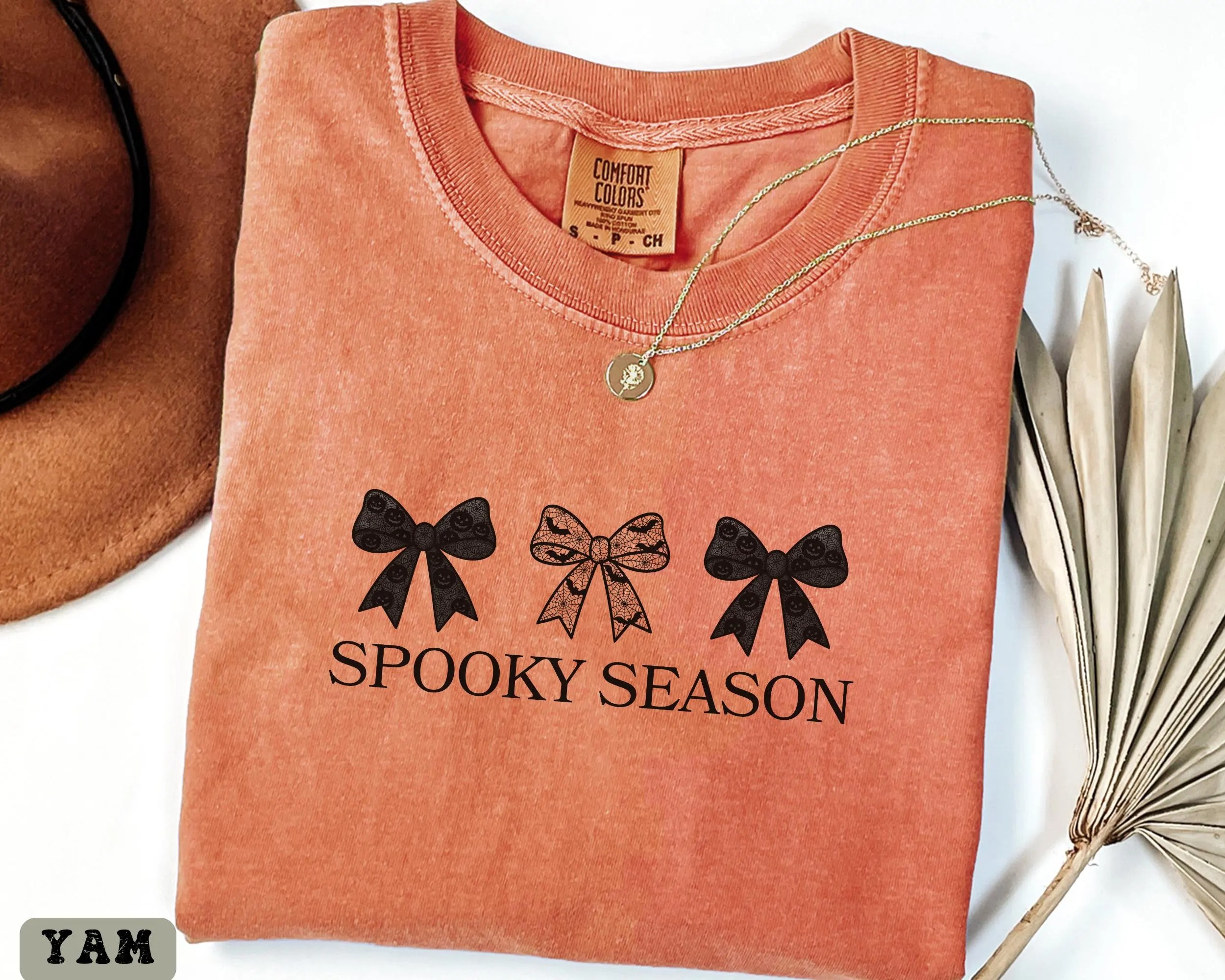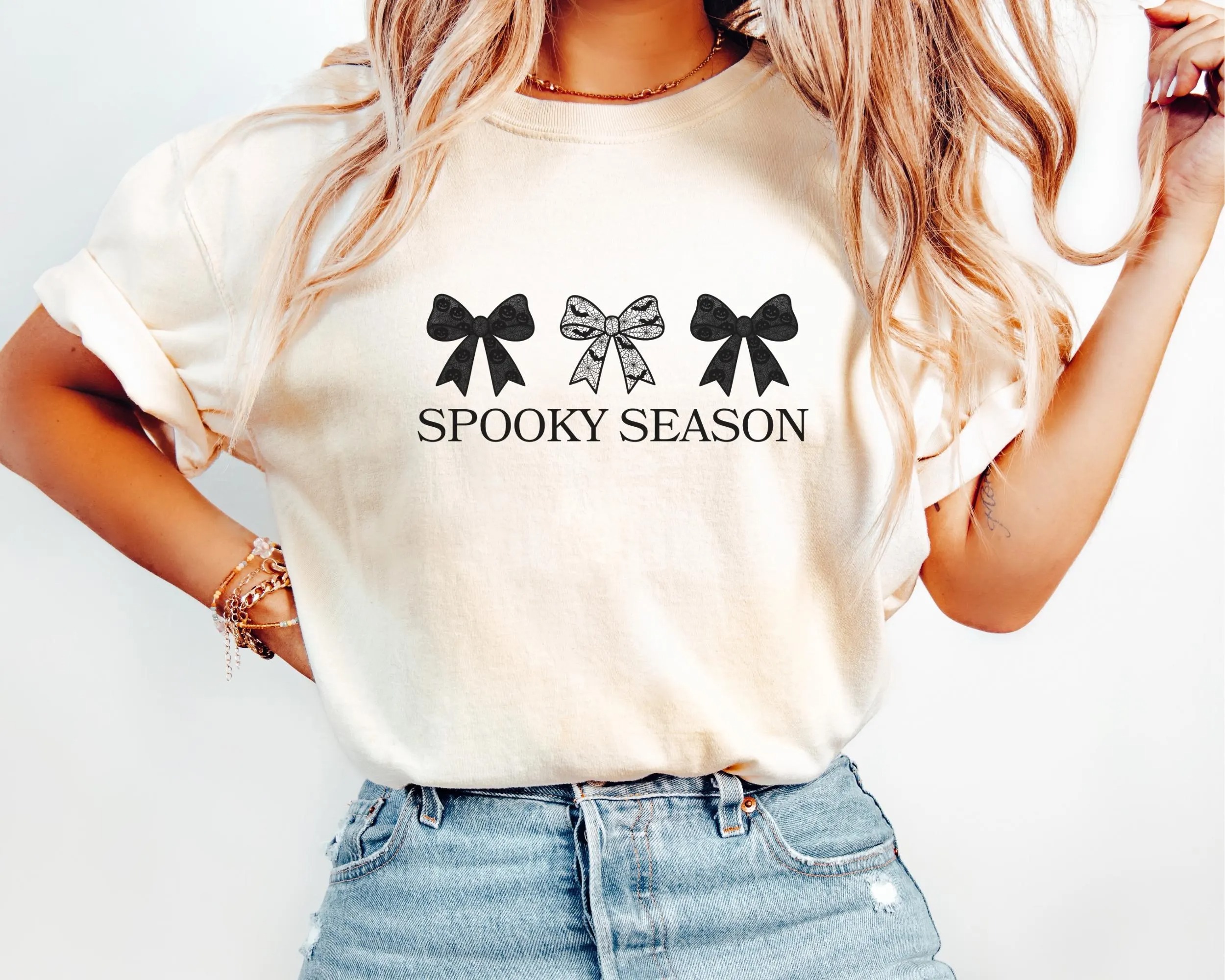 Halloween Coquette Bow T-Shirt, Spooky Season Bow Tee, Cute Minimalist Fall Top, Spiderweb Shirt Girly Spooky