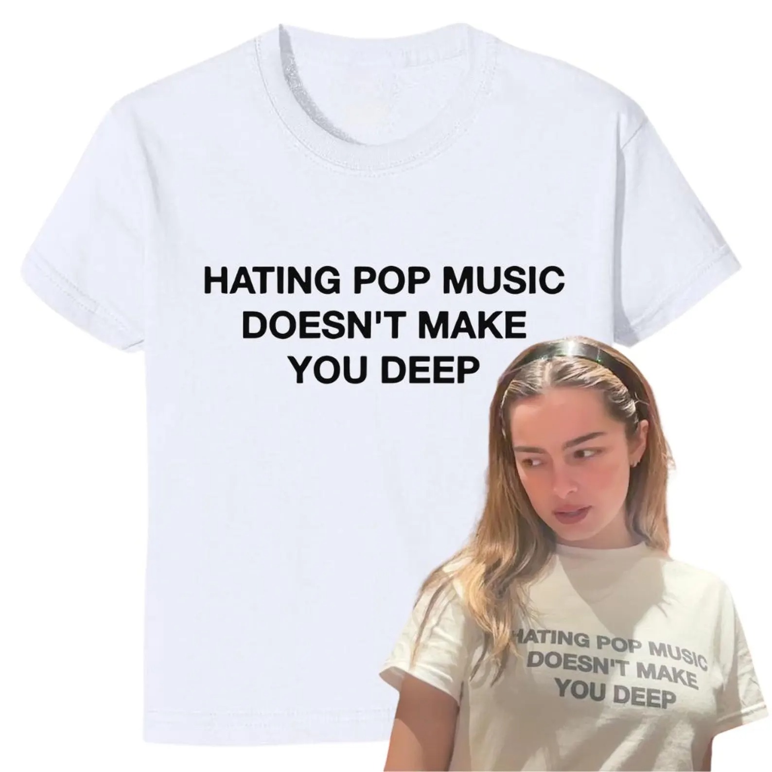 Hating Pop Music Doesn’t Make You Deep – Screen Printed – Y2K Style – Handmade – Viral Celebrity T-Shirt