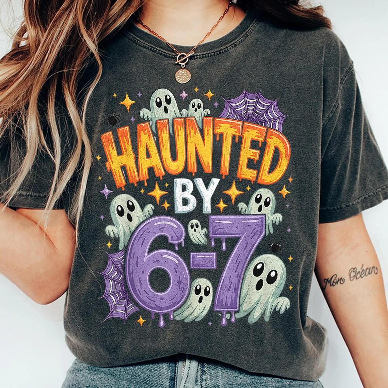 Haunted By 67 Haunted By 6-7 6 7 Halloween Shirt, Spooky Meme Tee, Viral TikTok Funny Phrase, Ghostly Internet Joke