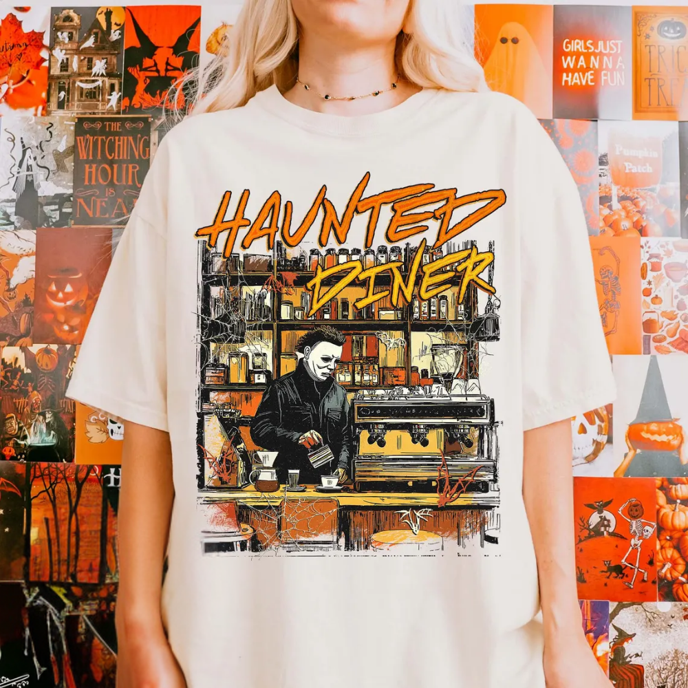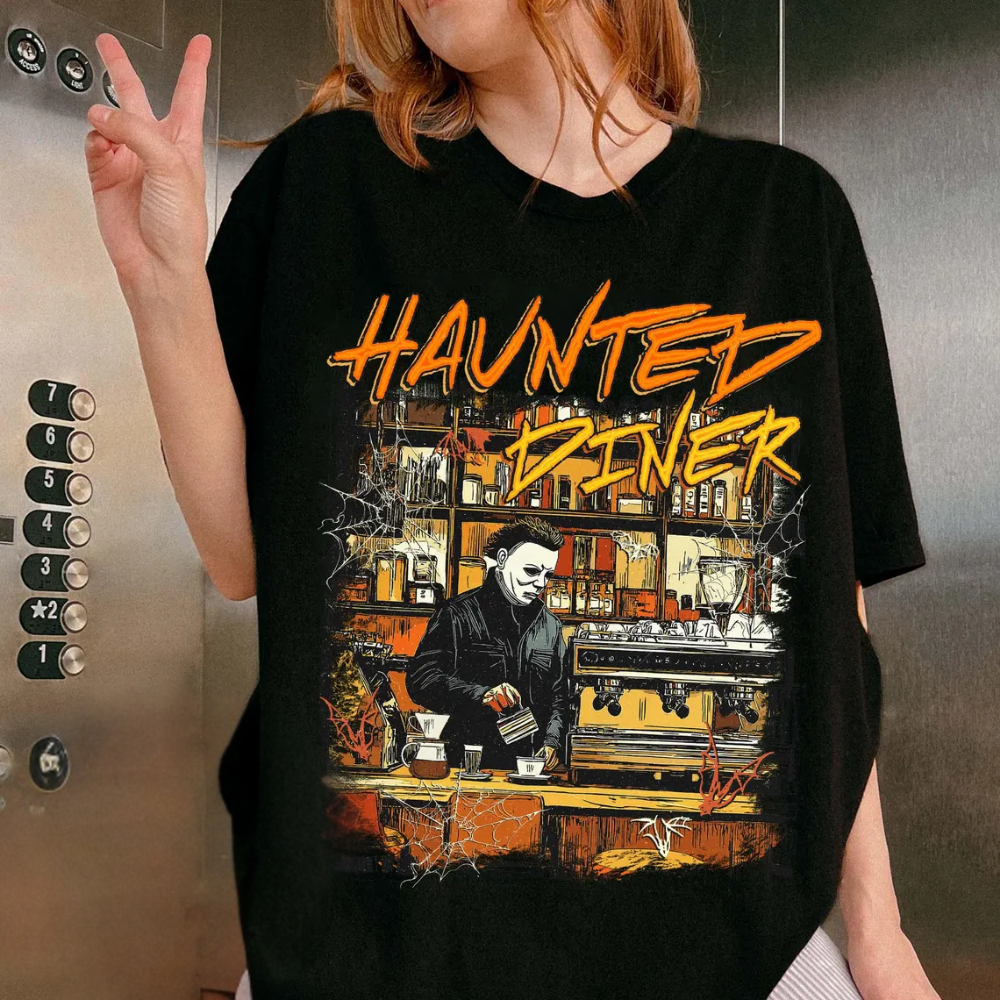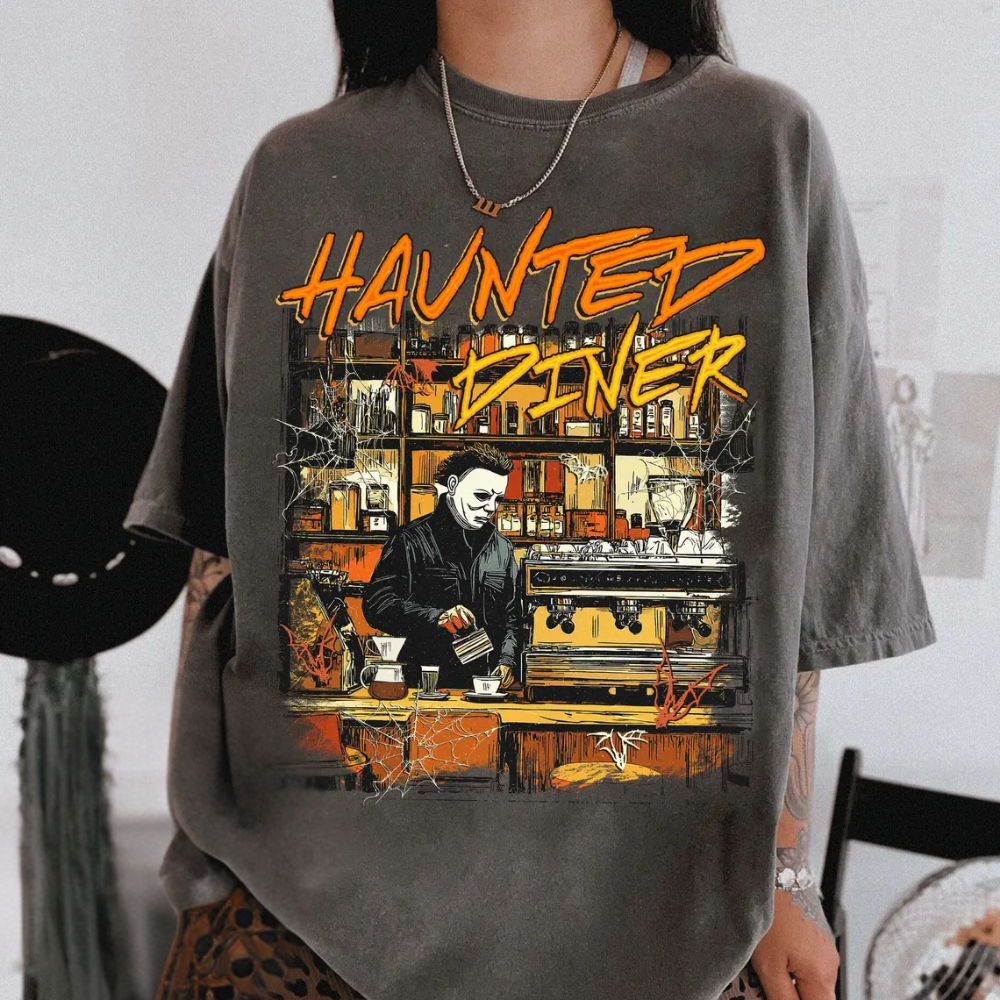 Haunted Diner T-Shirt, Horror Movie Shirt, Myers Thriller Friday the 13th Horror Tee, Retro Halloween Tshirt, Coffee Lover Top