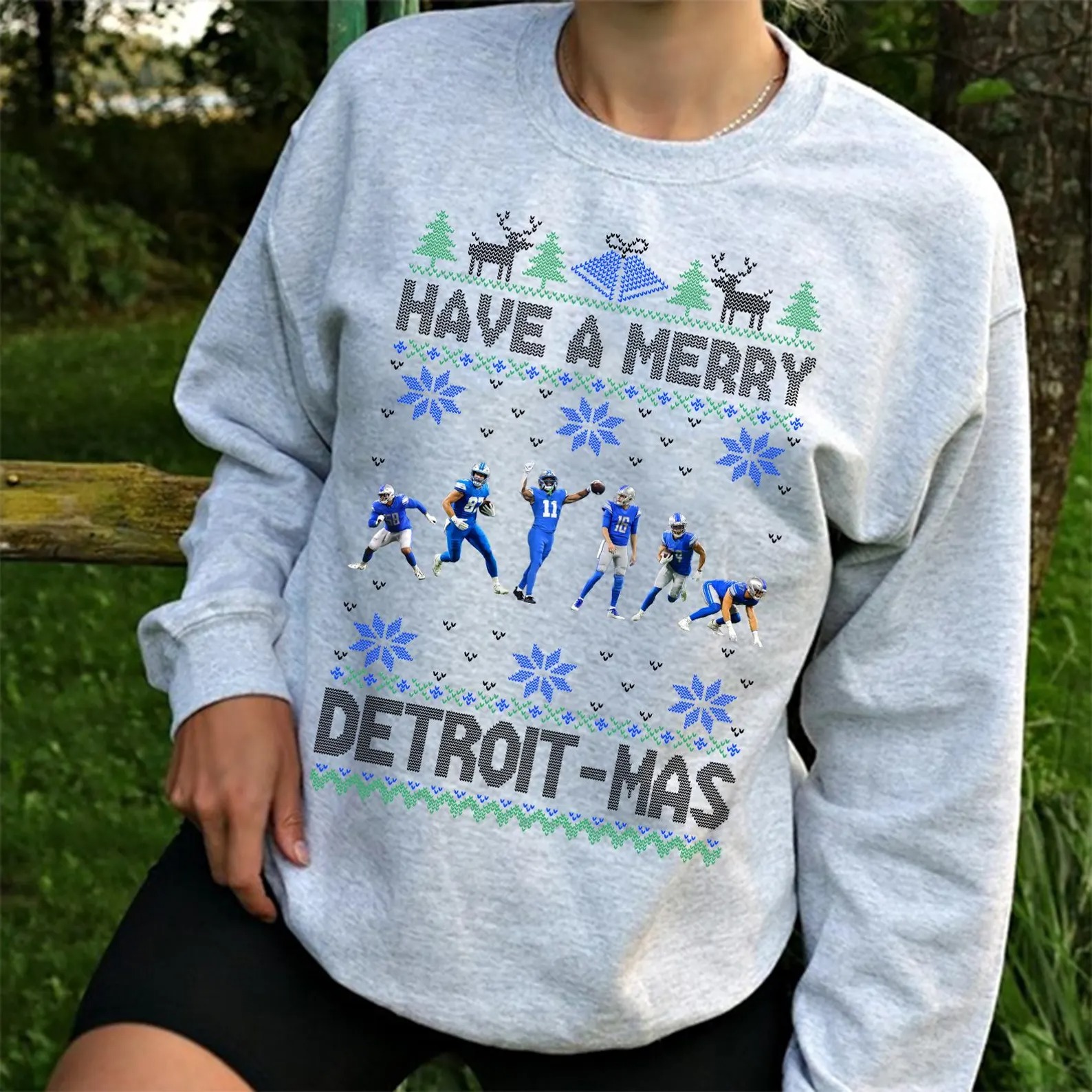 Have A Merry Detroit Football T-Shirt, Christmas Game Day Shirt, Football Season Tee, Trendy Fan Gift, Football Crewneck, Detroit Football Top
