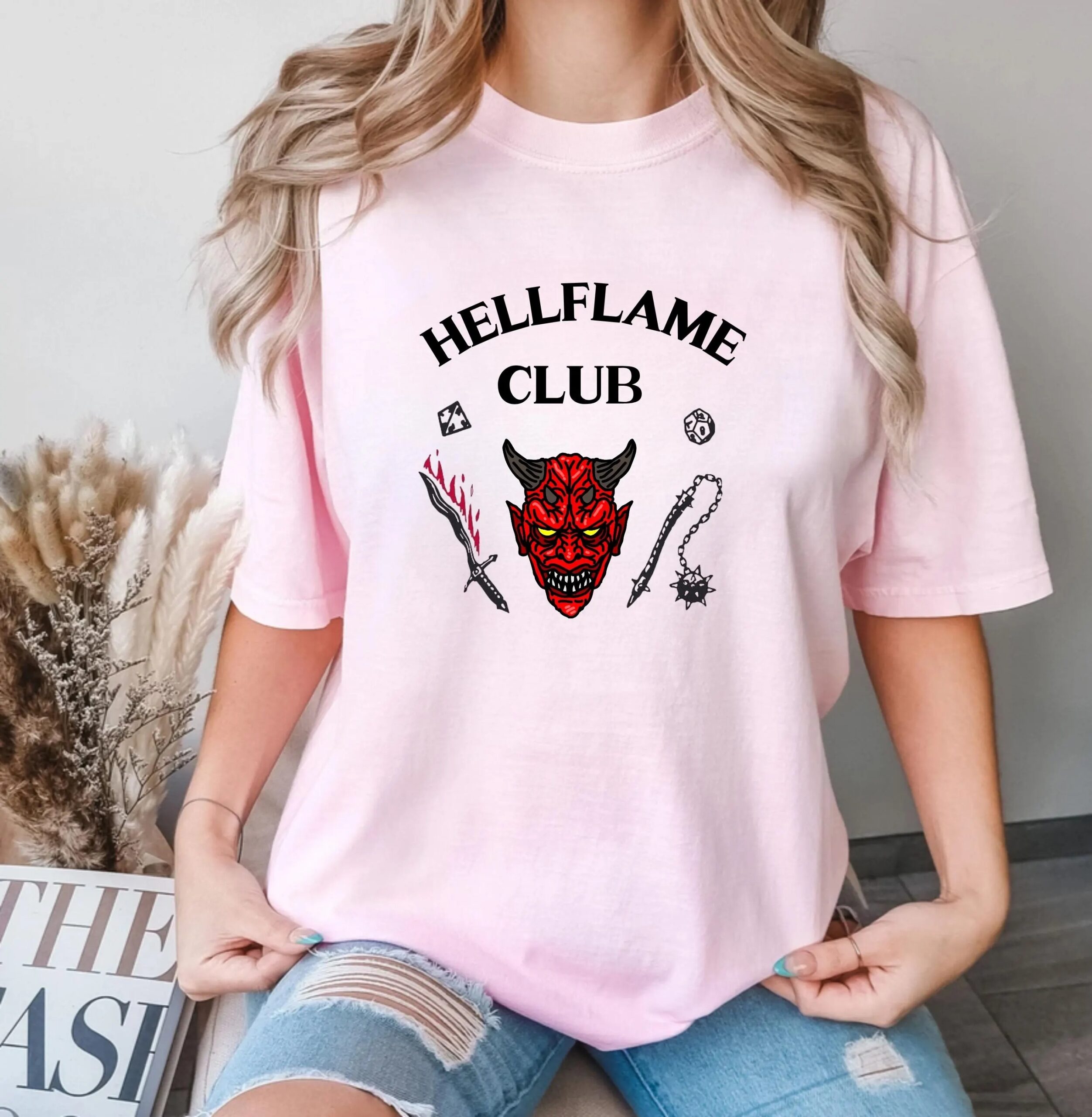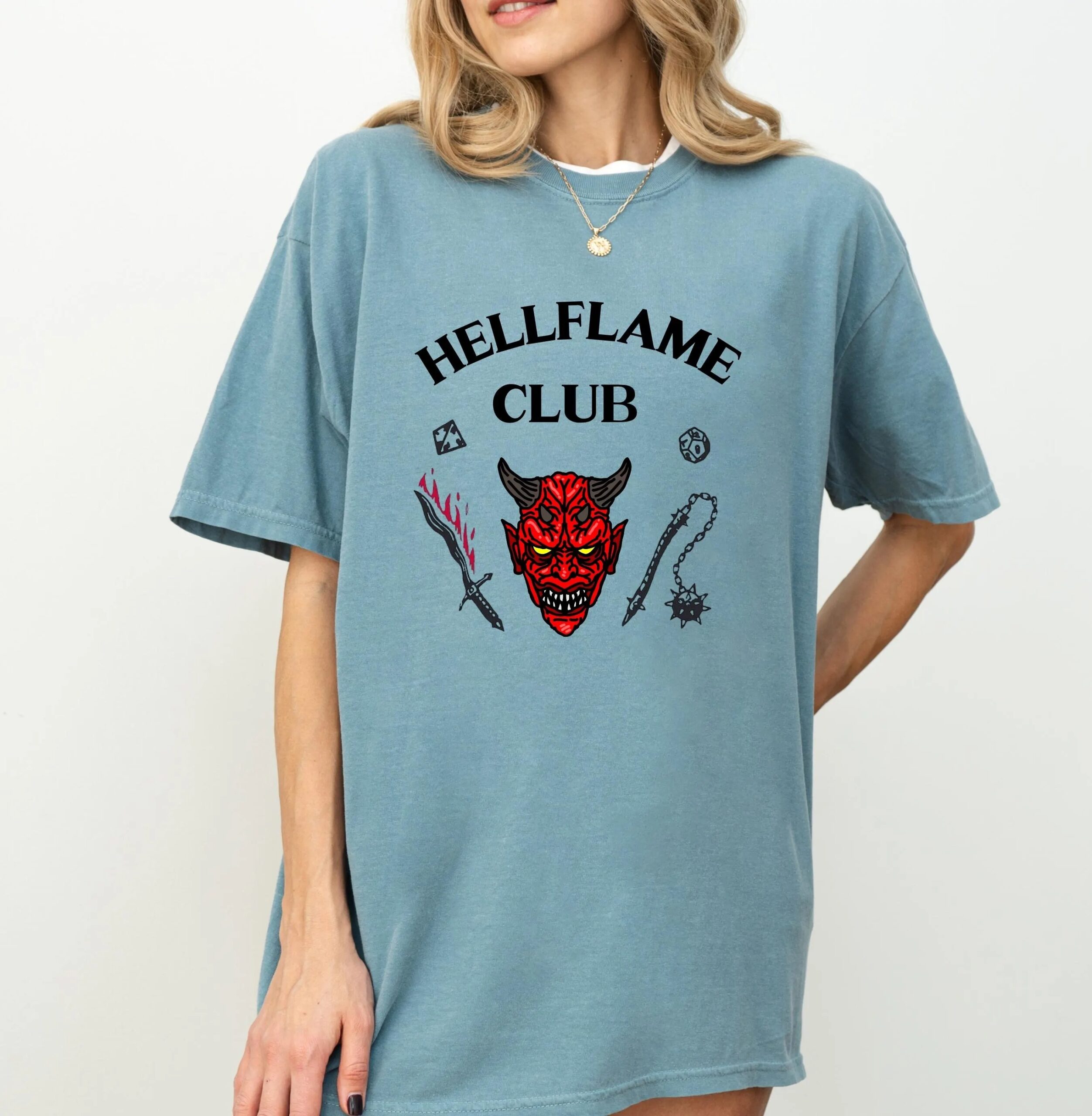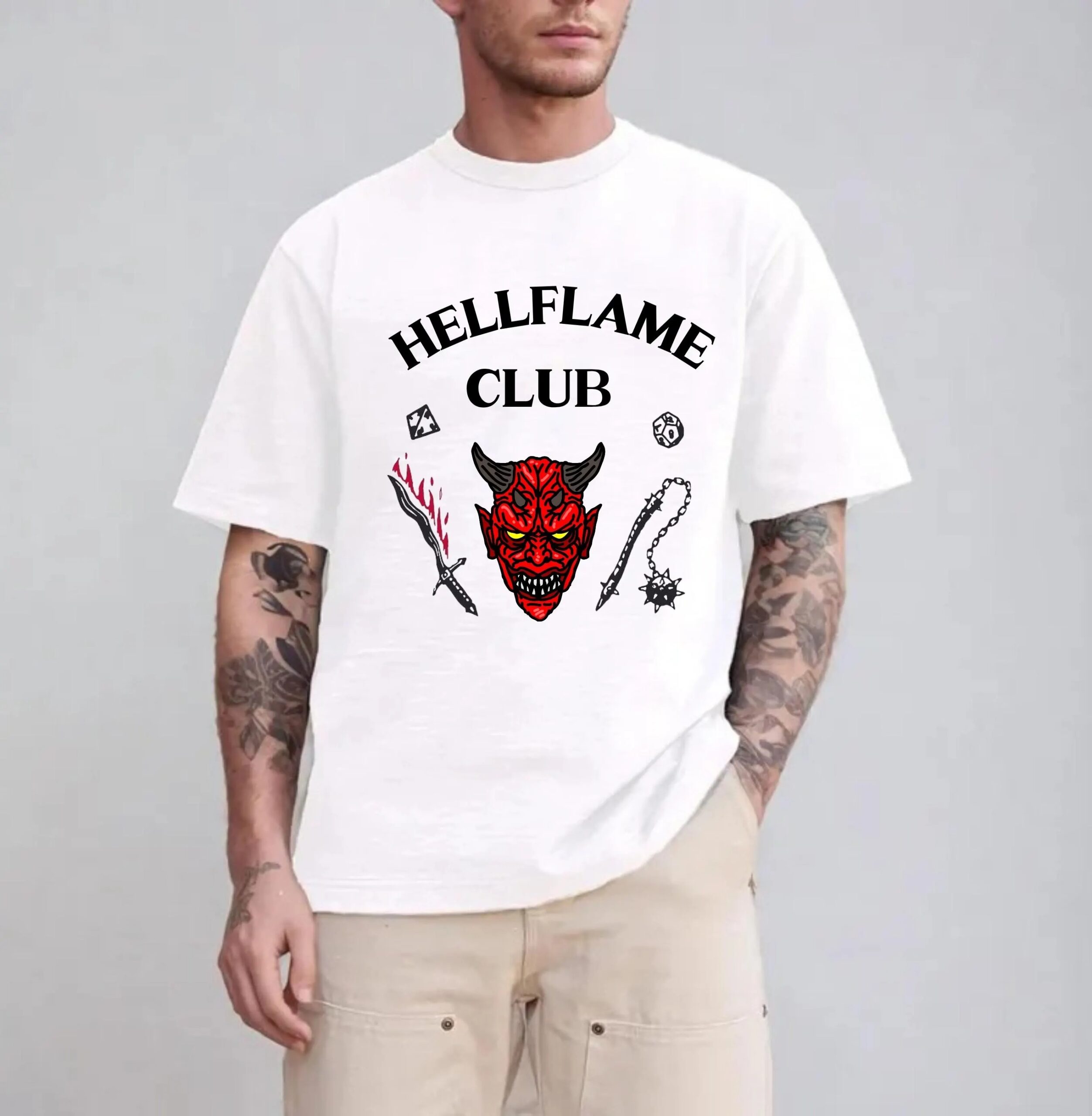 Hellflame Club Unisex T-Shirt, Eddie Tee, Starnge Thing Shirt, Upside Down Top, Halloween, Stranger Monster