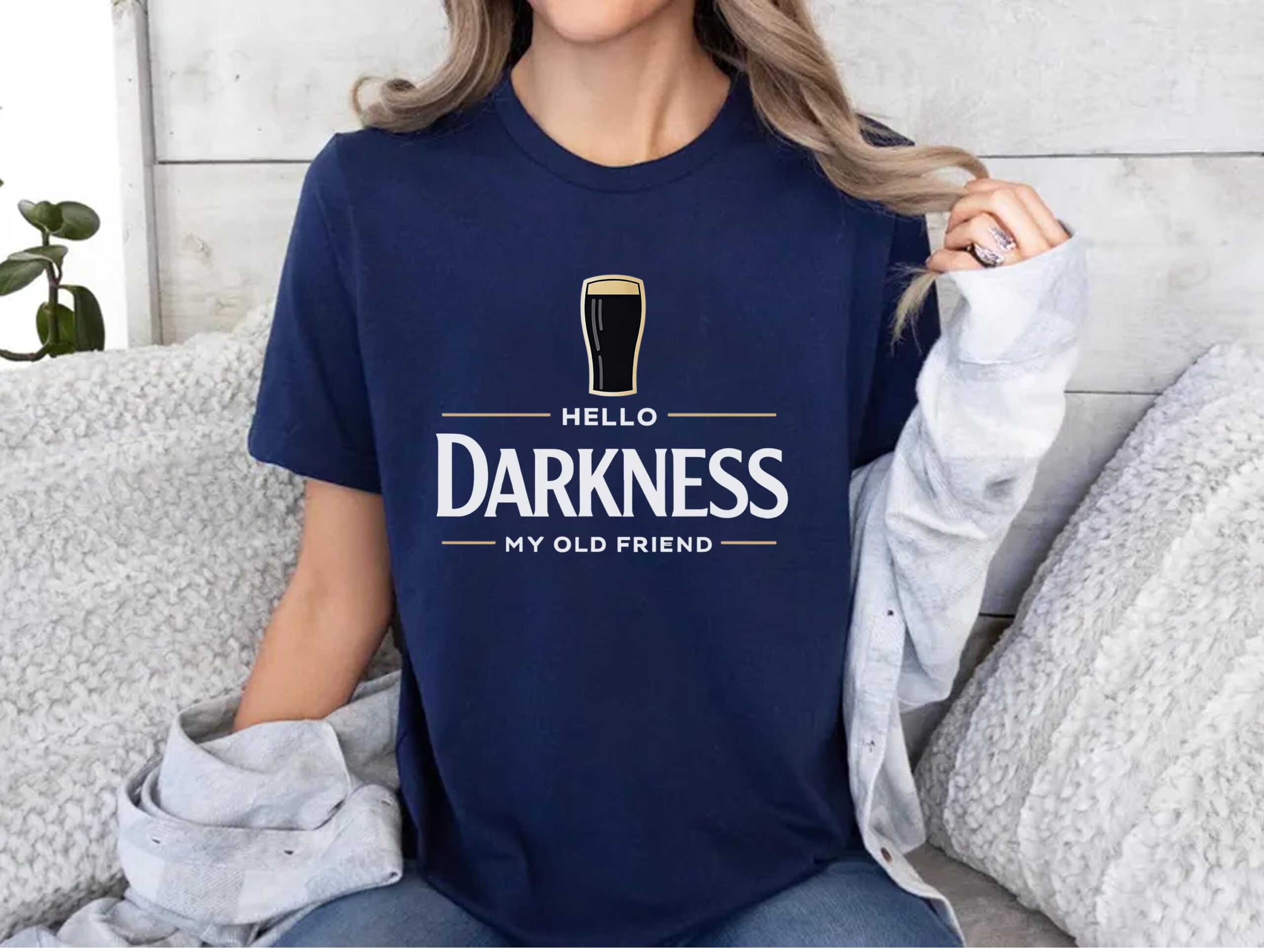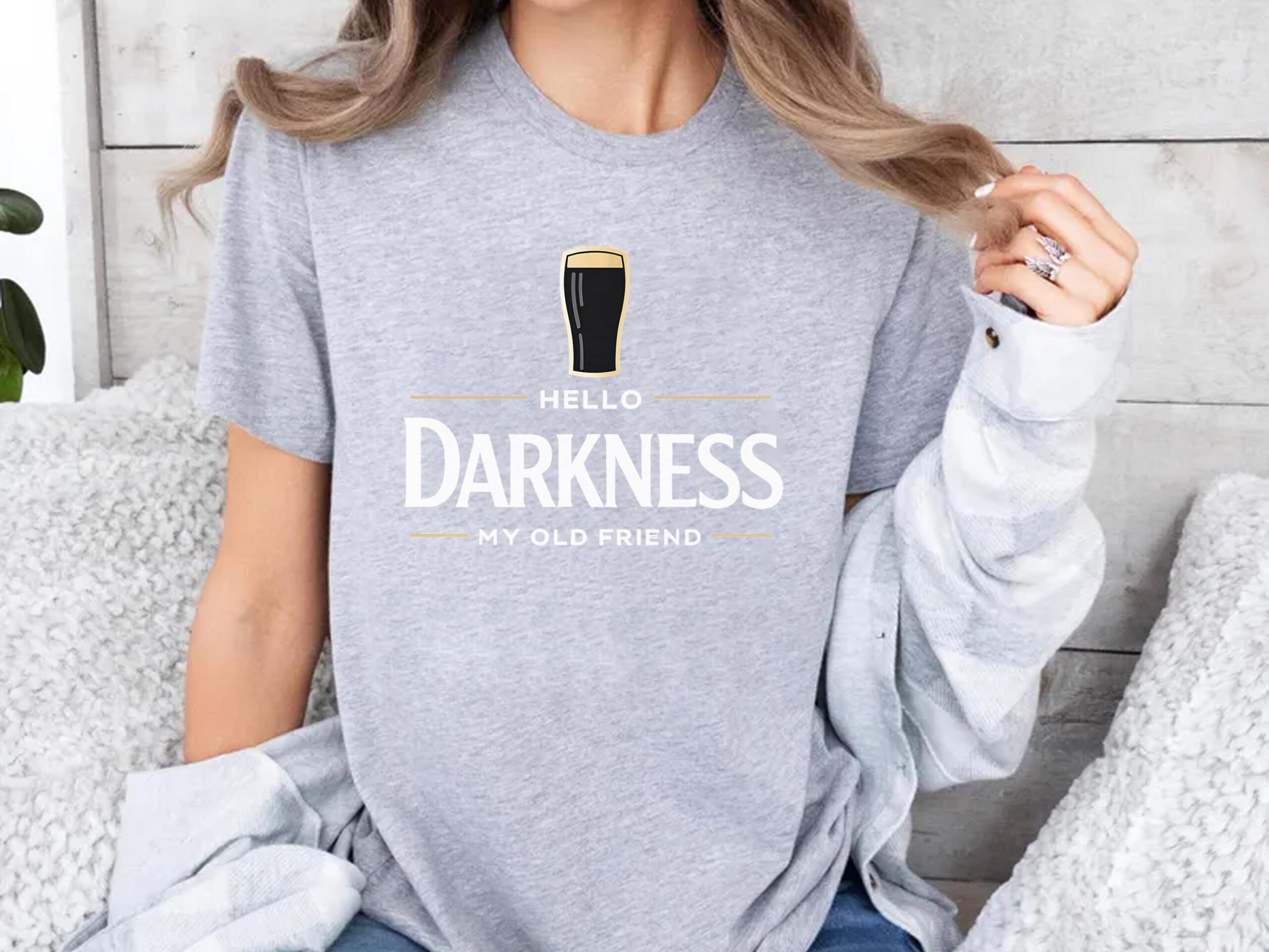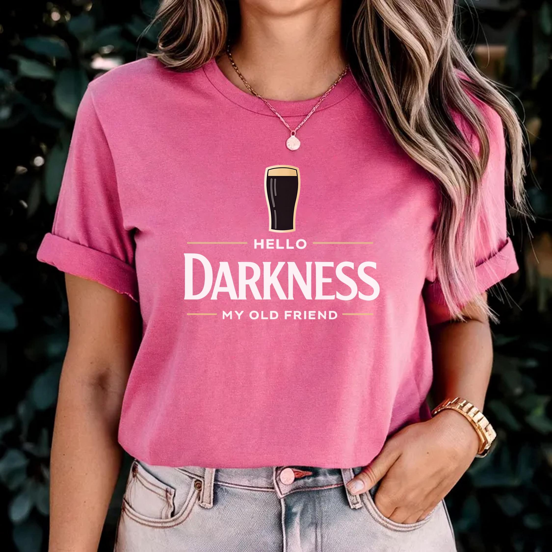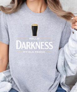 Hello Darkness My Old Friend T-Shirt, Funny Drinking Shirt, Beer Lover Tee, St Patrick’s Day Party Shirts, Irish Humor Graphic Top, Beer Gift