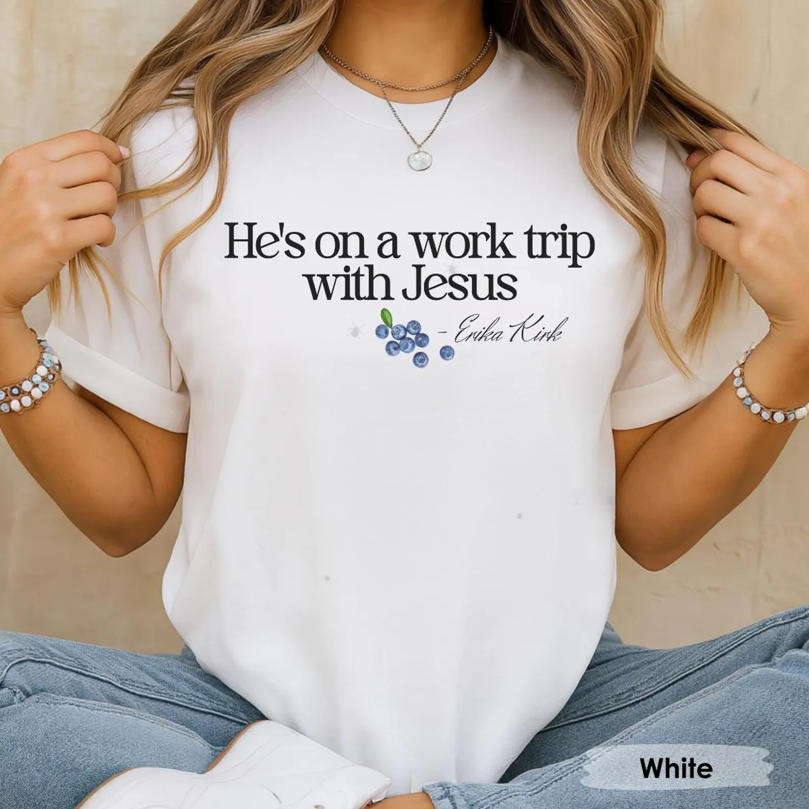 He’s on a Work Trip with Jesus Christian T-Shirt, Faith Based Inspired By Erika Kirk