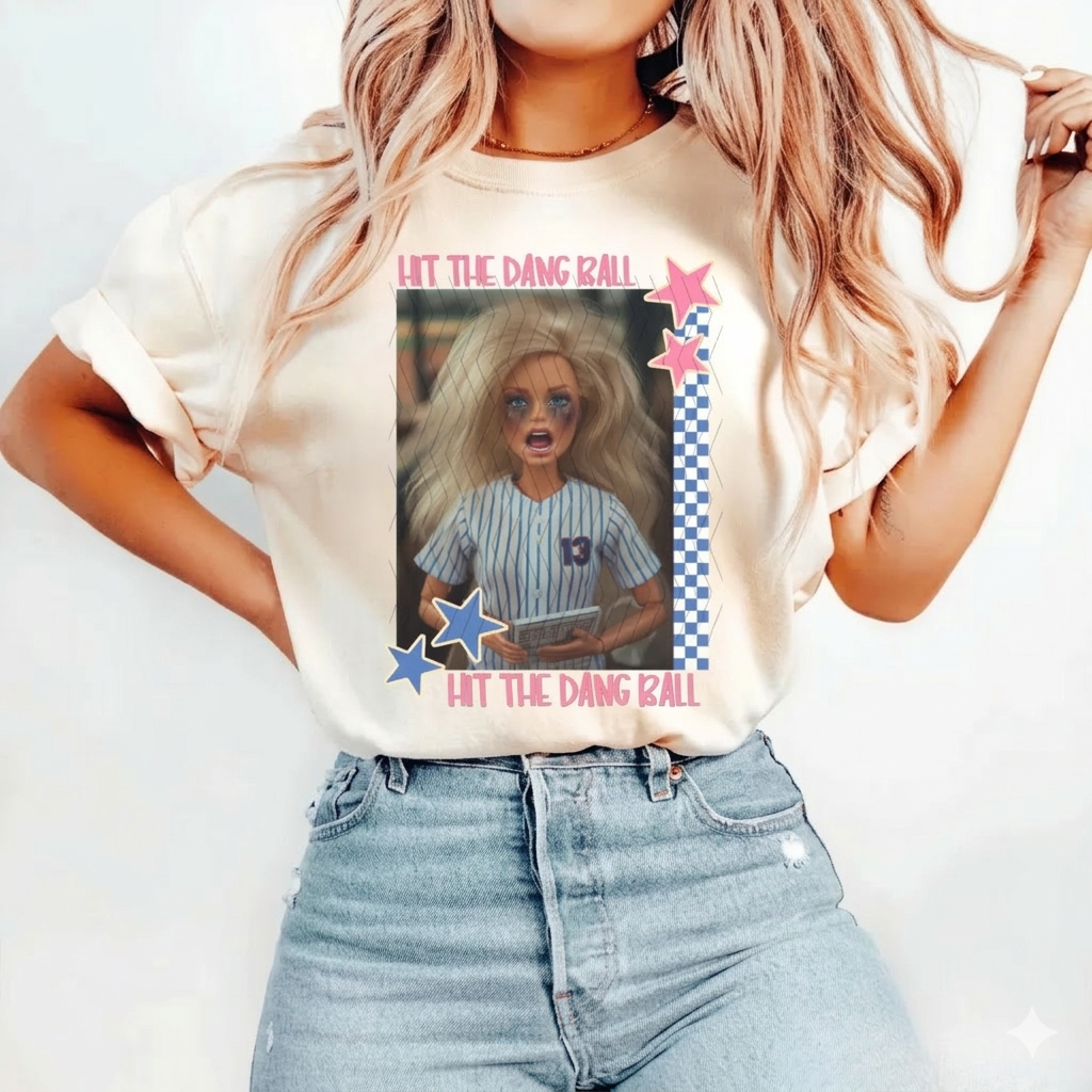 Hit The Dang Ball Baseball Mom Shirt, Game Day Softball Tee, Distressed Doll Face Meme
