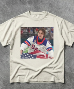 Hockey USA Jack Hughes T-Shirt, American Flag Skate Portrait Tee, Gift for Sports Fan