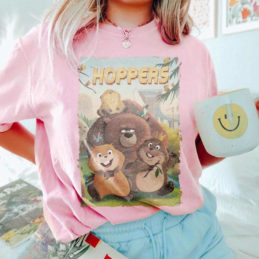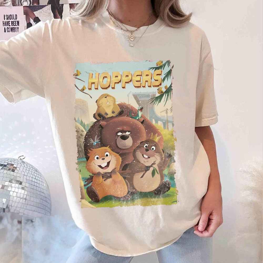 Hoppers Pixar Movie Shirt, Retro Pixar Animation Tee, Disney Pixar Hoppers Graphic T-Shirt, Vintage Style Beaver and Bear Top