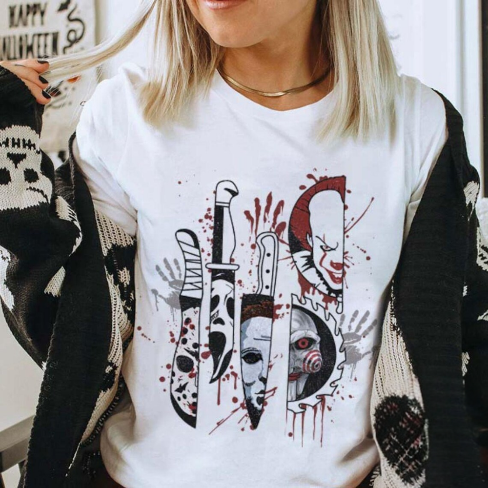 Horror Characters Knifes Tshirt, Universal Studios Scary Movie Tee, Halloween Shirt, Gift for her him