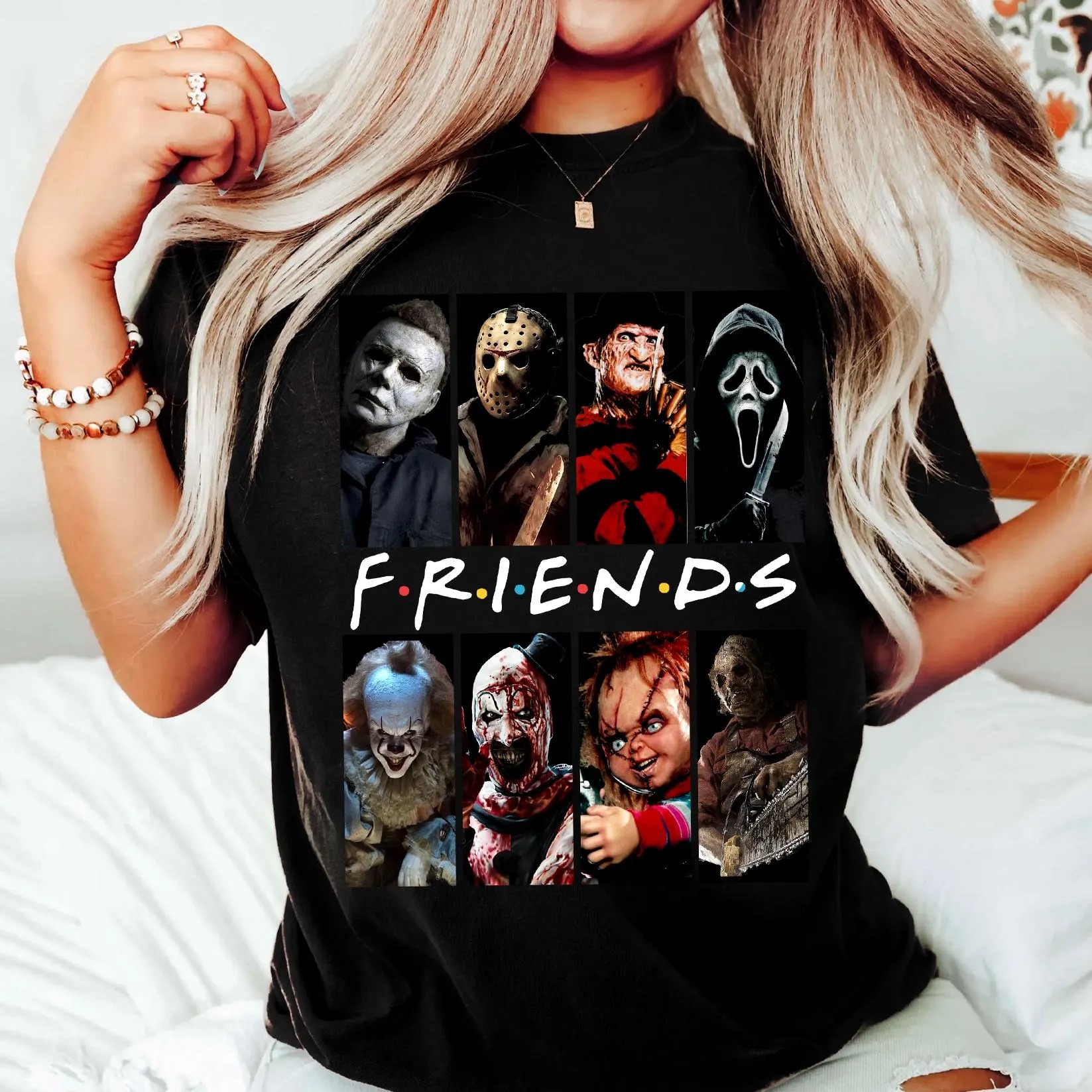 Horror Movie Friends Shirt, Michael Myers Jason Freddy Krueger Ghostface Pennywise Chucky Leatherface Terrifier Tee