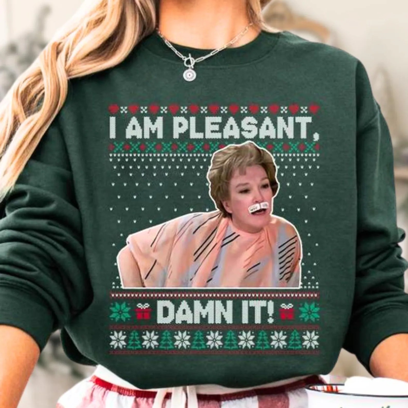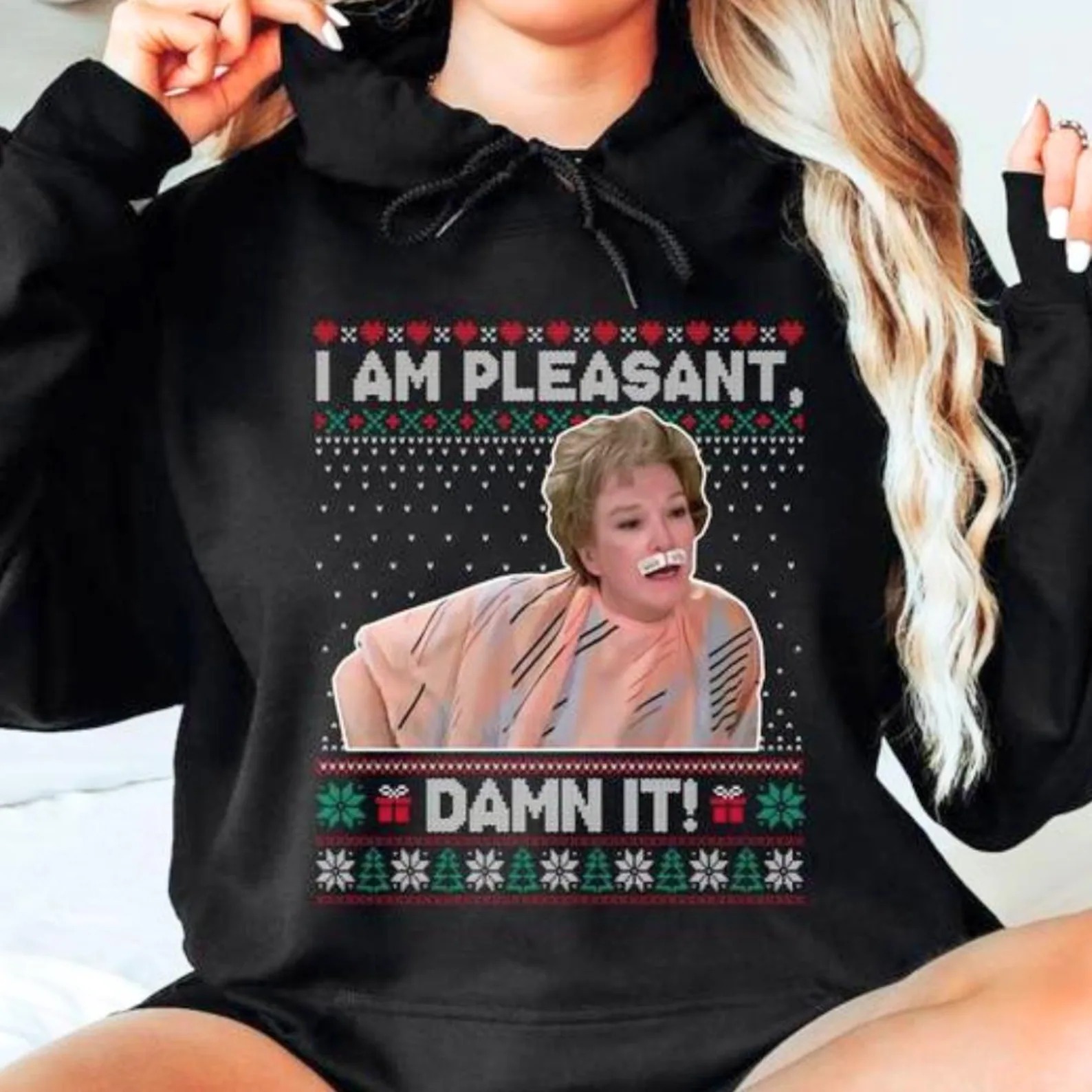 I Am Pleasant Damn It Ugly Christmas T-Shirt, Steel Magnolias Christmas Sweatshirt, Funny Tv Series Quote Hoodie, Xmas Season Movie Shirt